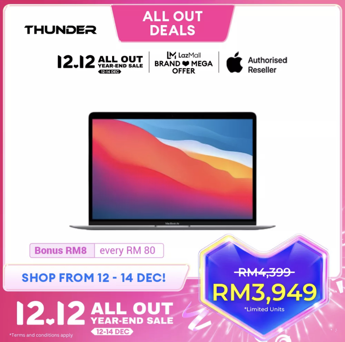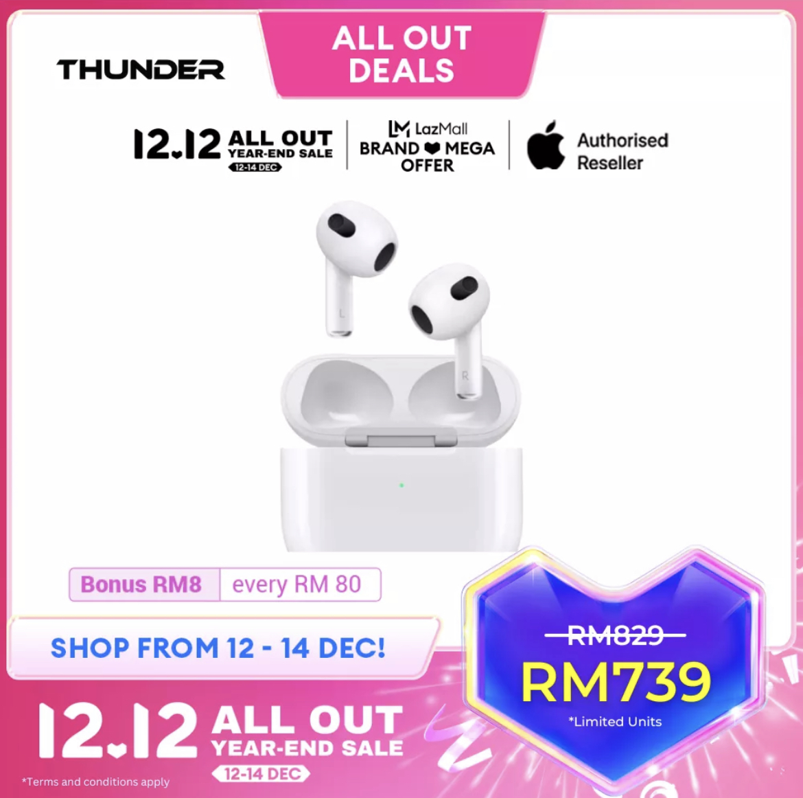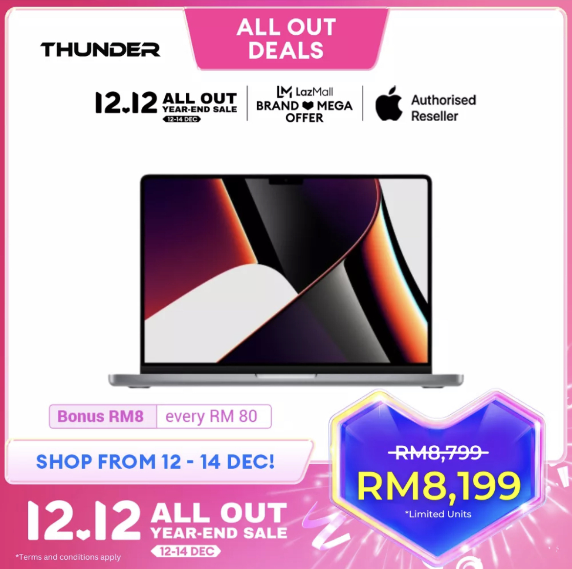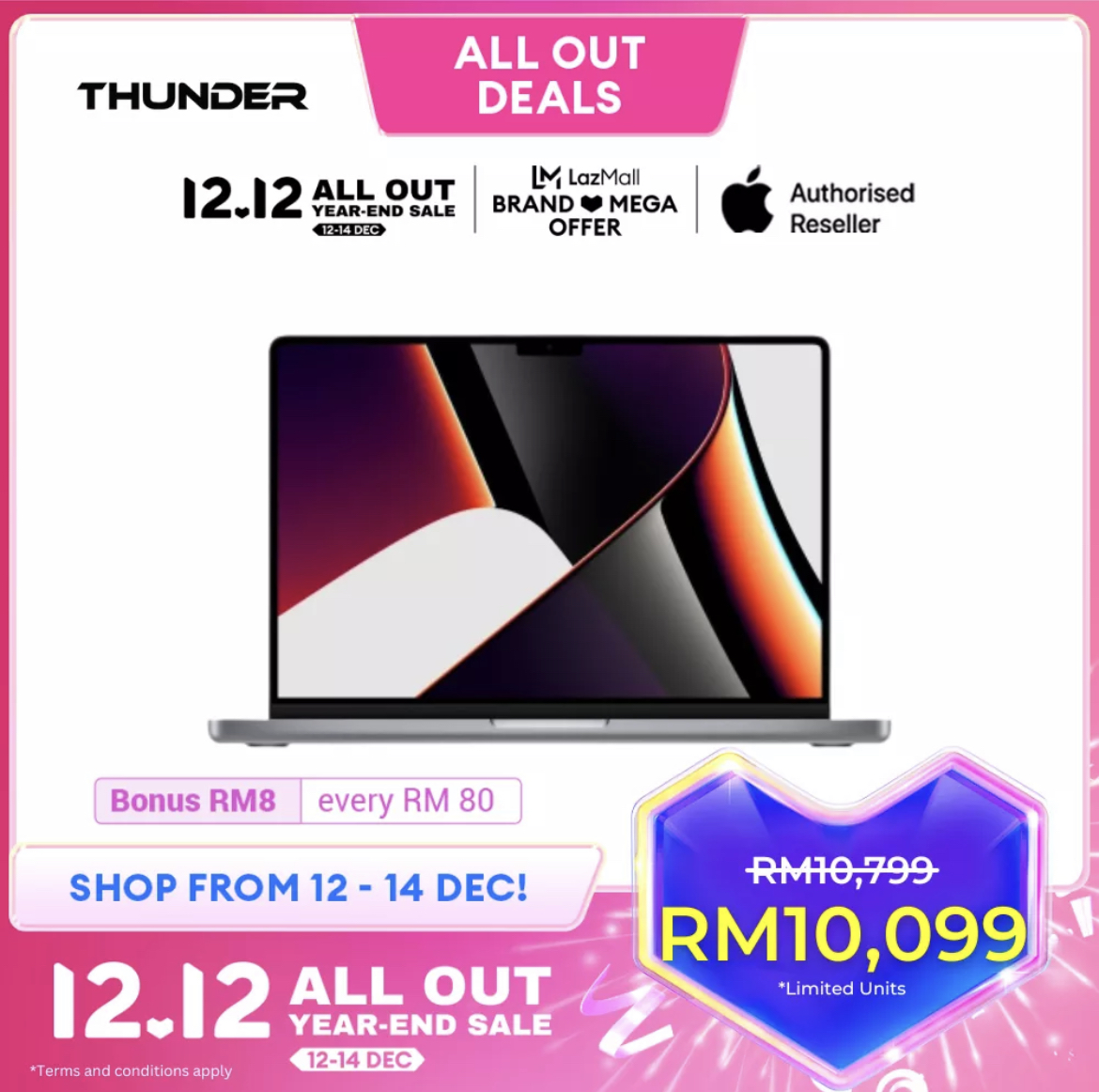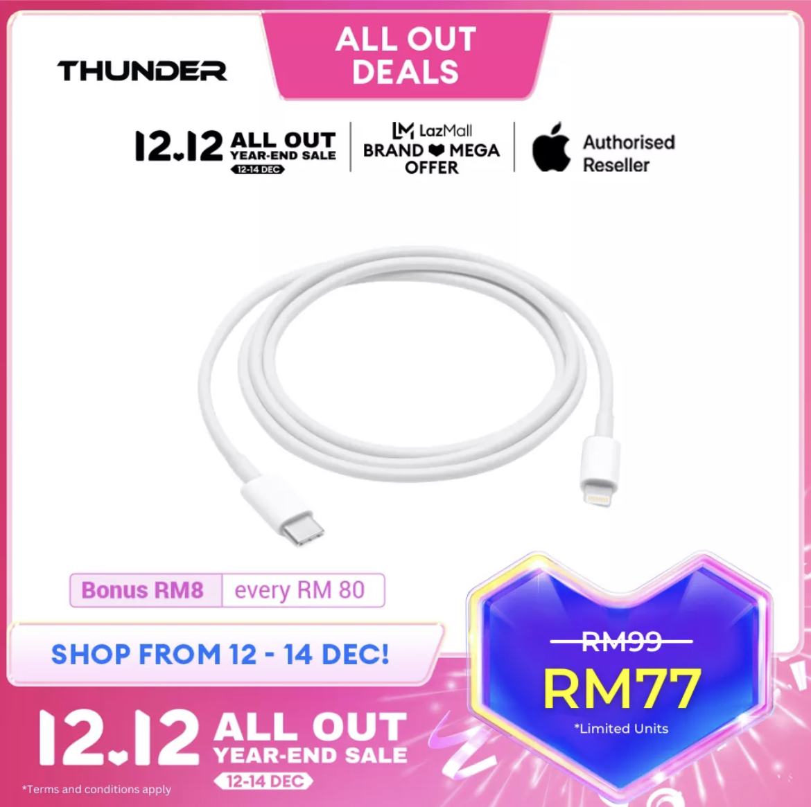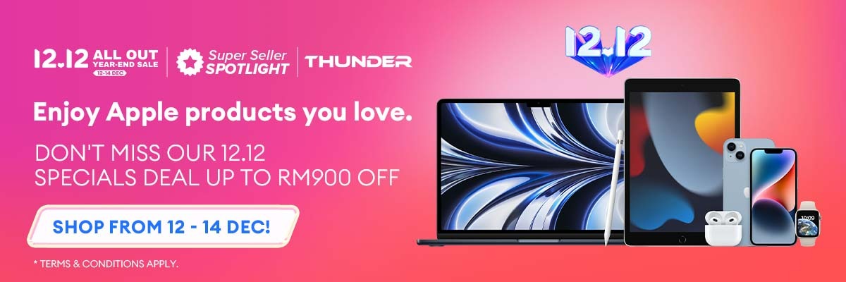 Apple 经销商—— TMT Thunder 配合这次12.12购物节在 Lazada 旗舰店推出3天大优惠,iPhone、iPad、MacBook 及配件等折扣高达RM900,而且还有 Lazada Bonus 扣完再扣!