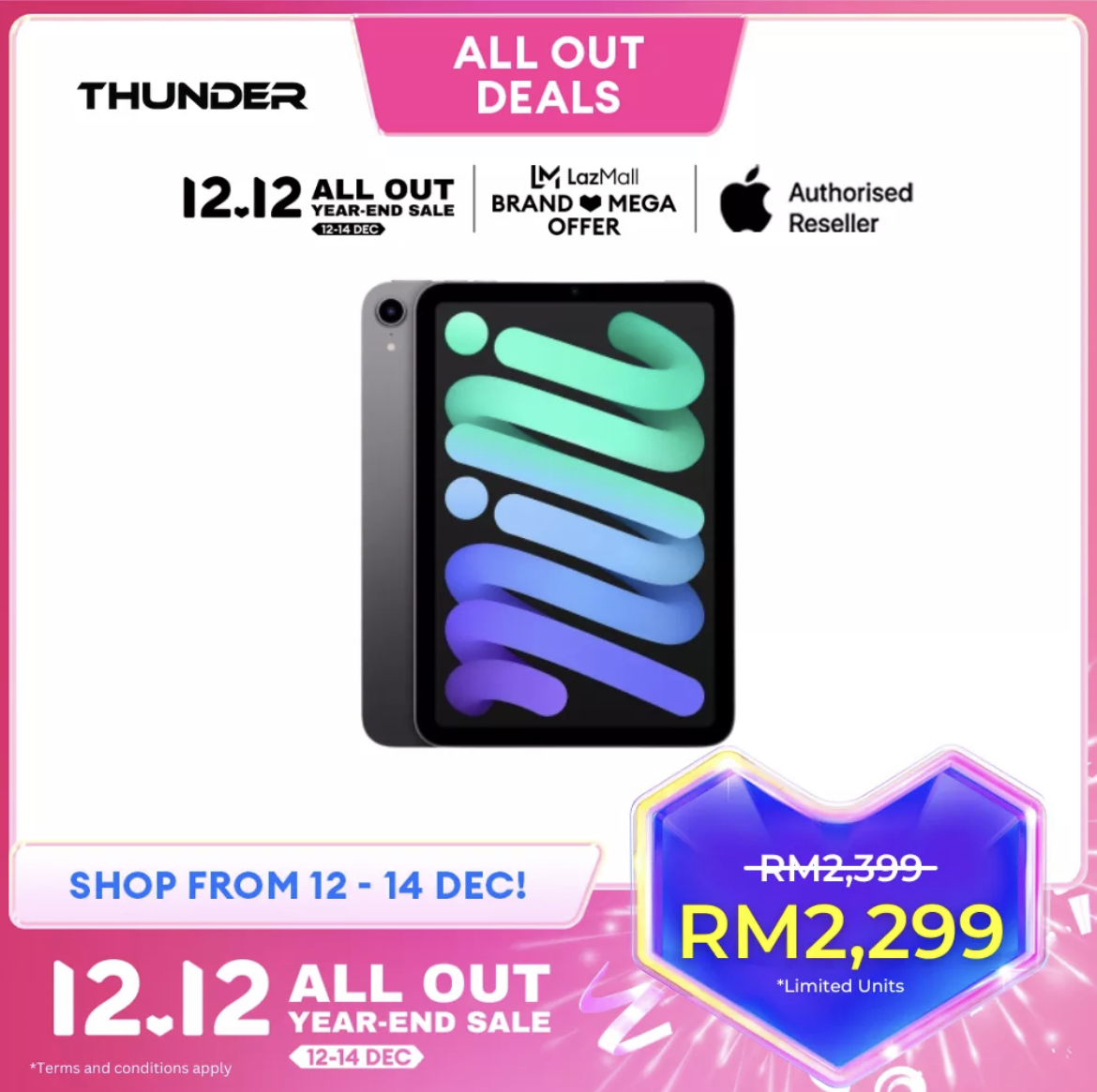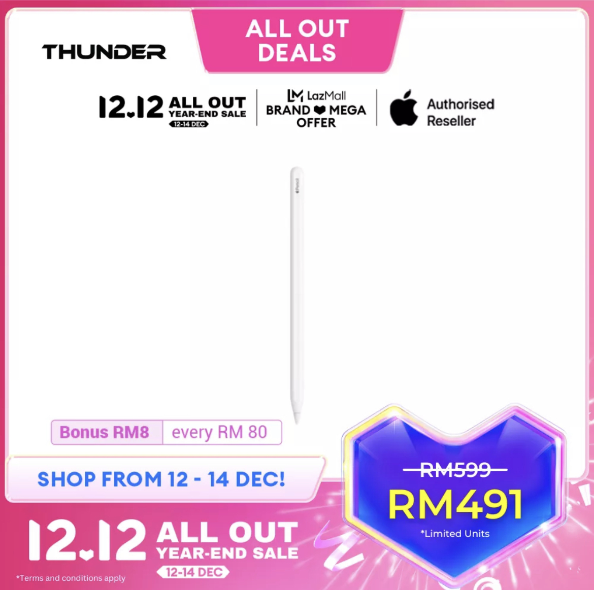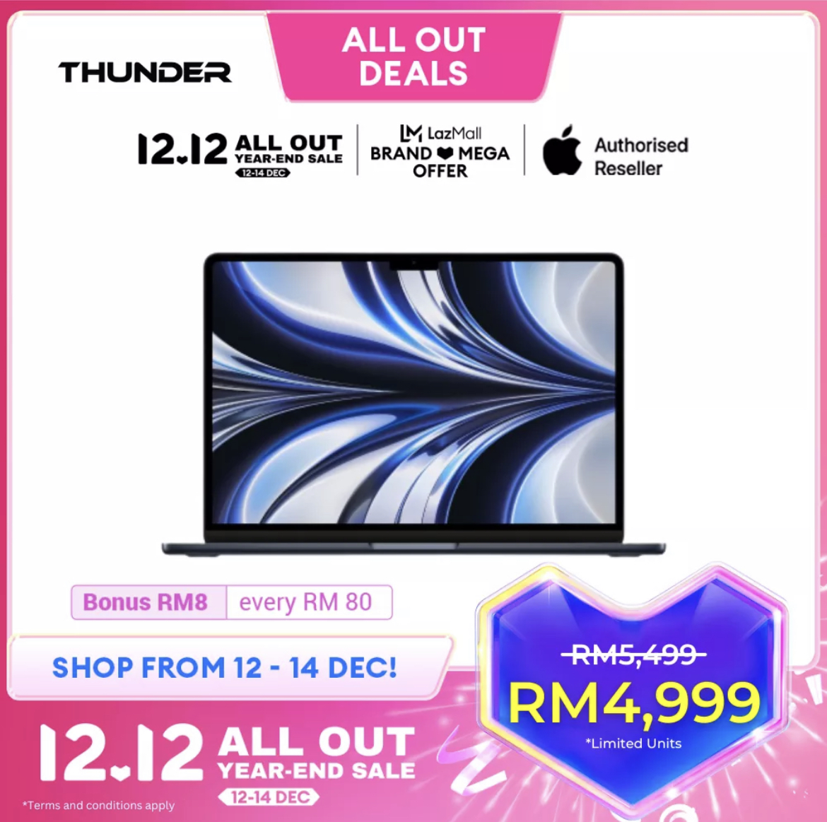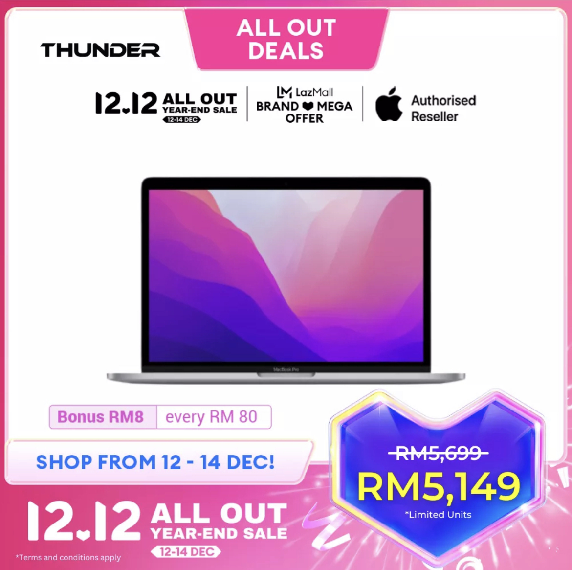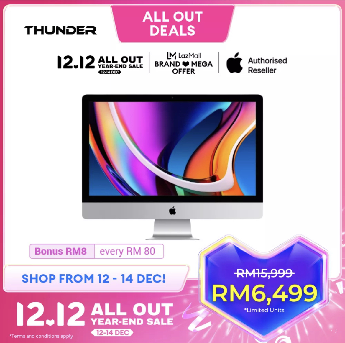 Apple 经销商—— TMT Thunder 配合这次12.12购物节在 Lazada 旗舰店推出3天大优惠,iPhone、iPad、MacBook 及配件等折扣高达RM900,而且还有 Lazada Bonus 扣完再扣!