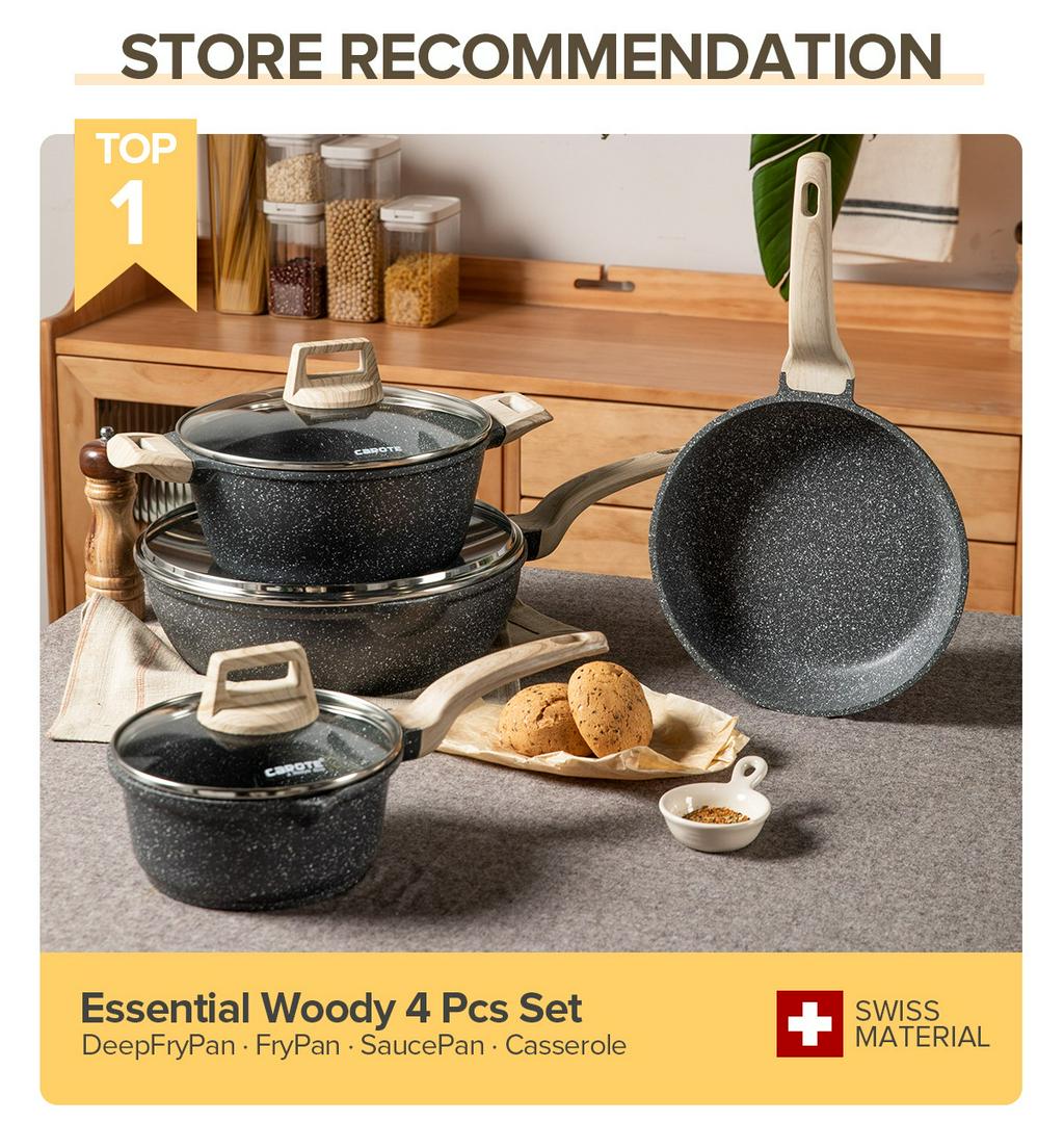▪ ④ Carote Essential Woody 木柄不粘炖锅 (16/18cm)