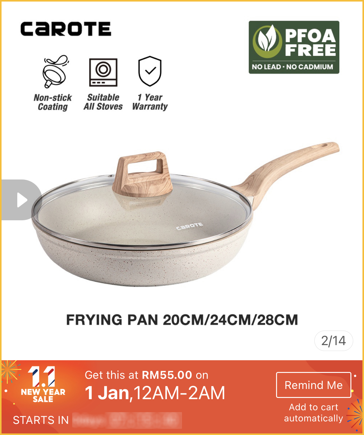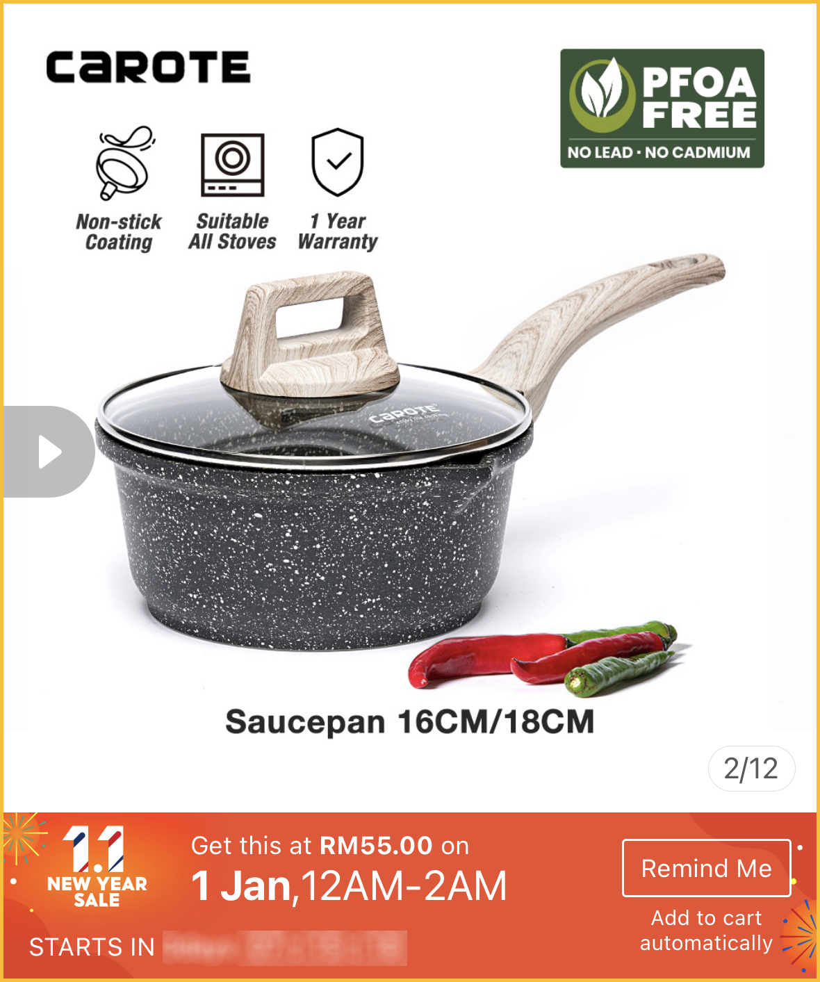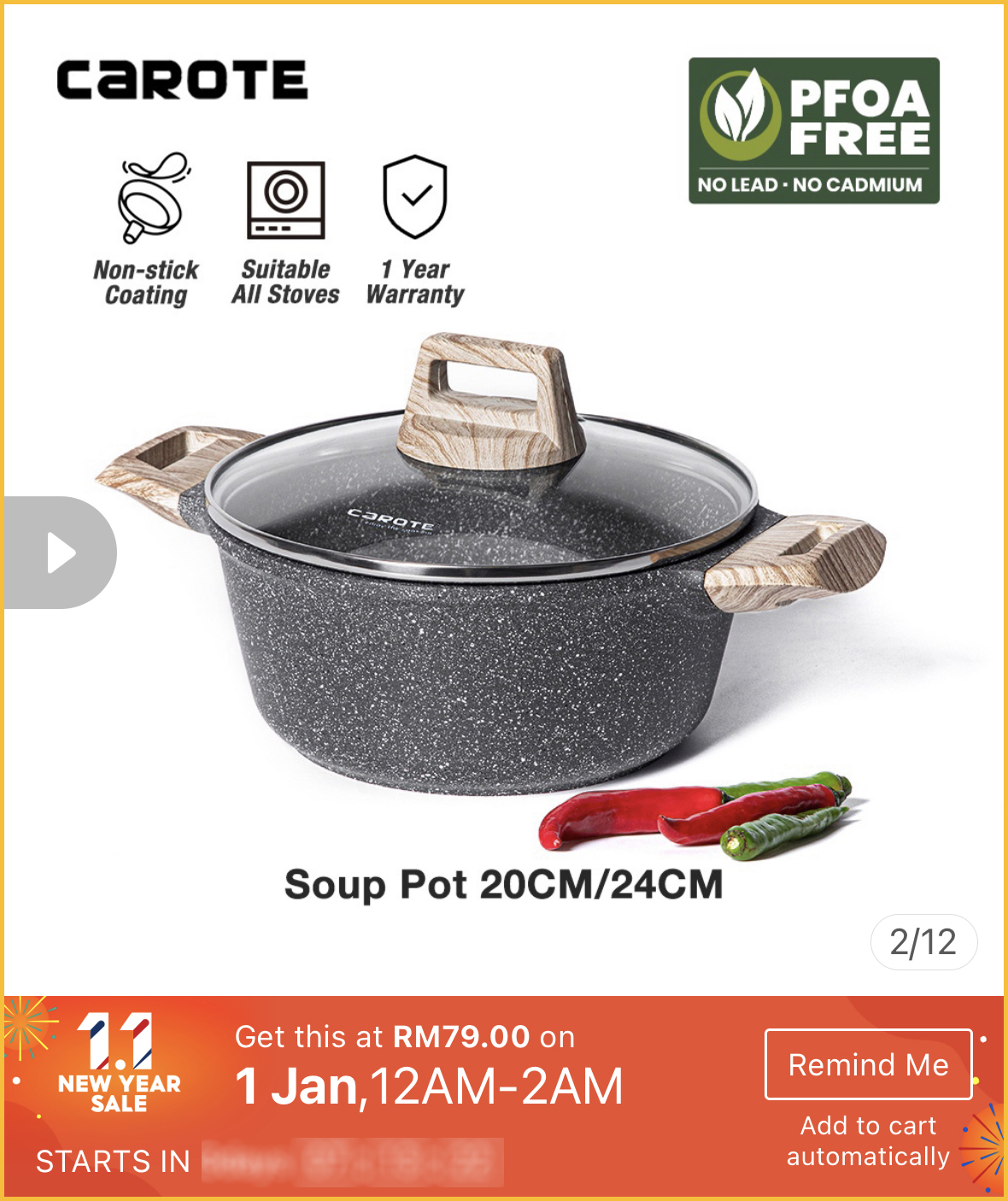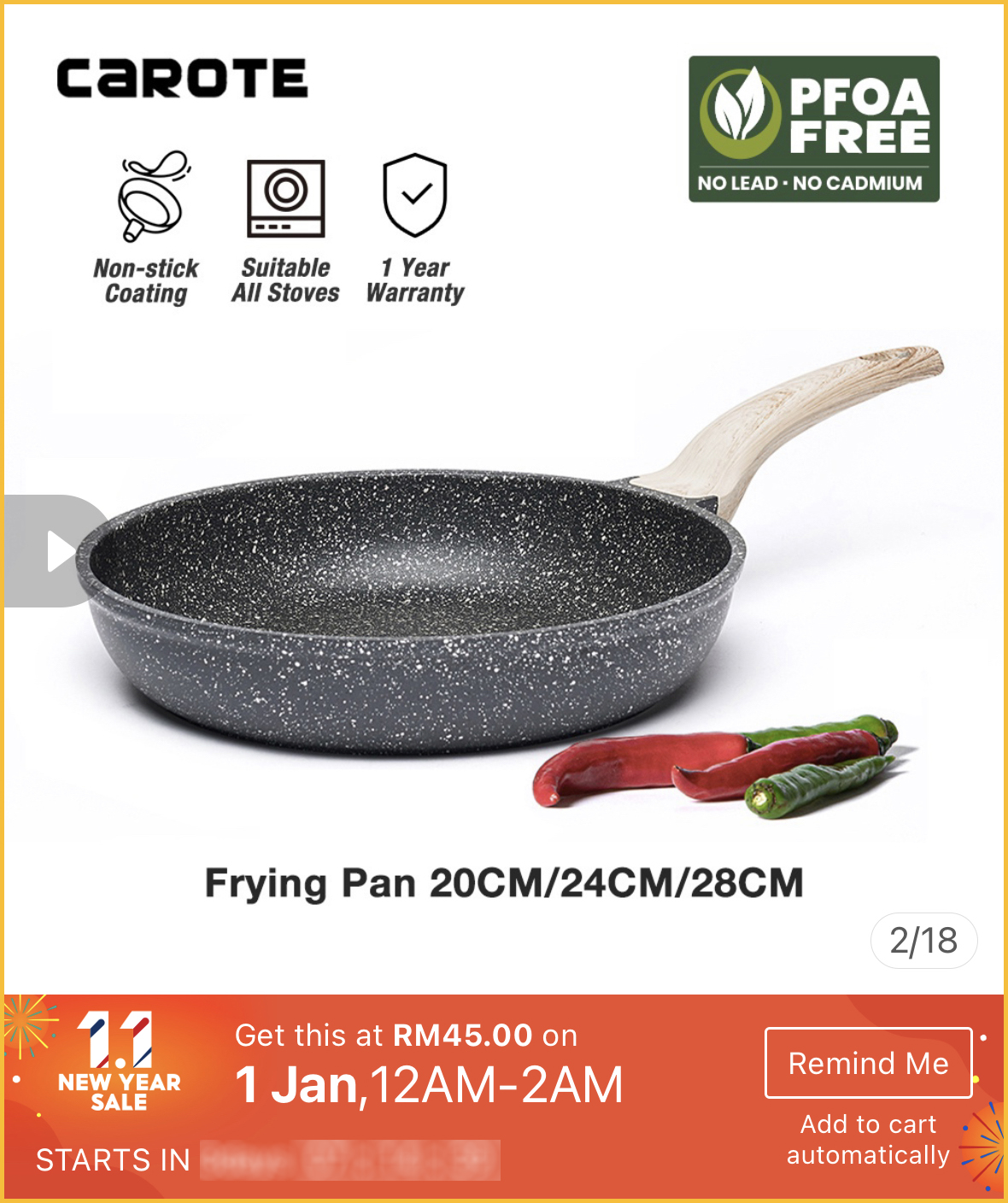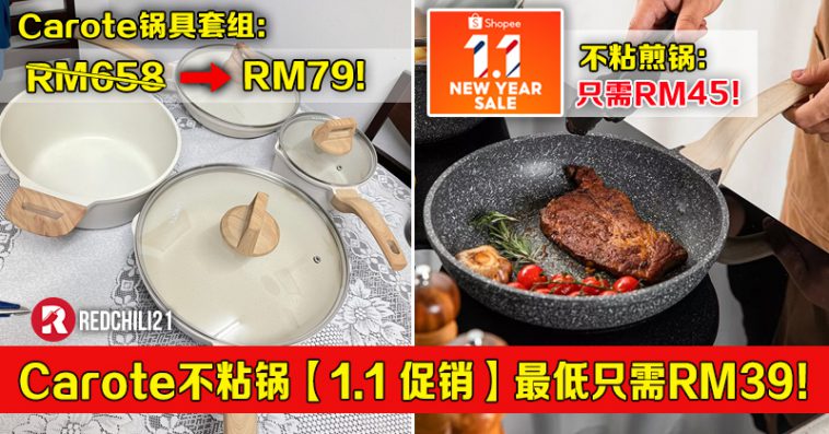 最近想要购买高颜值又品质好的不粘锅?1月1日就是好时机啦~Carote x Shopee 官方网店举办1月1日新年大优惠,不粘锅最低只需不到RM40!