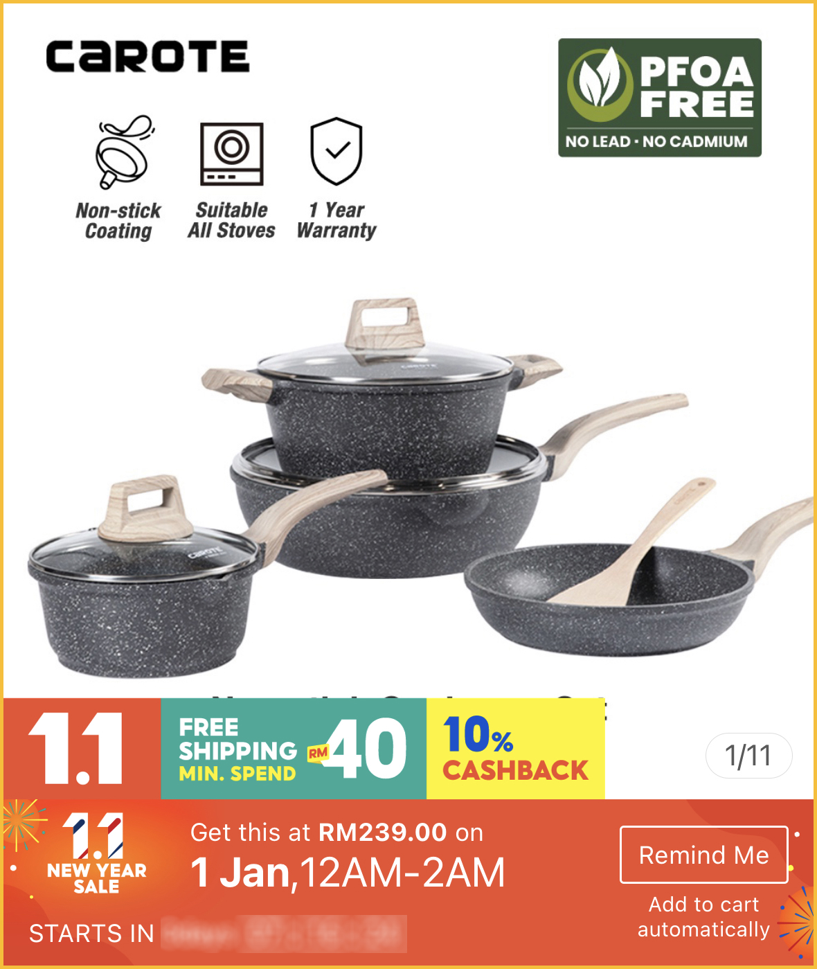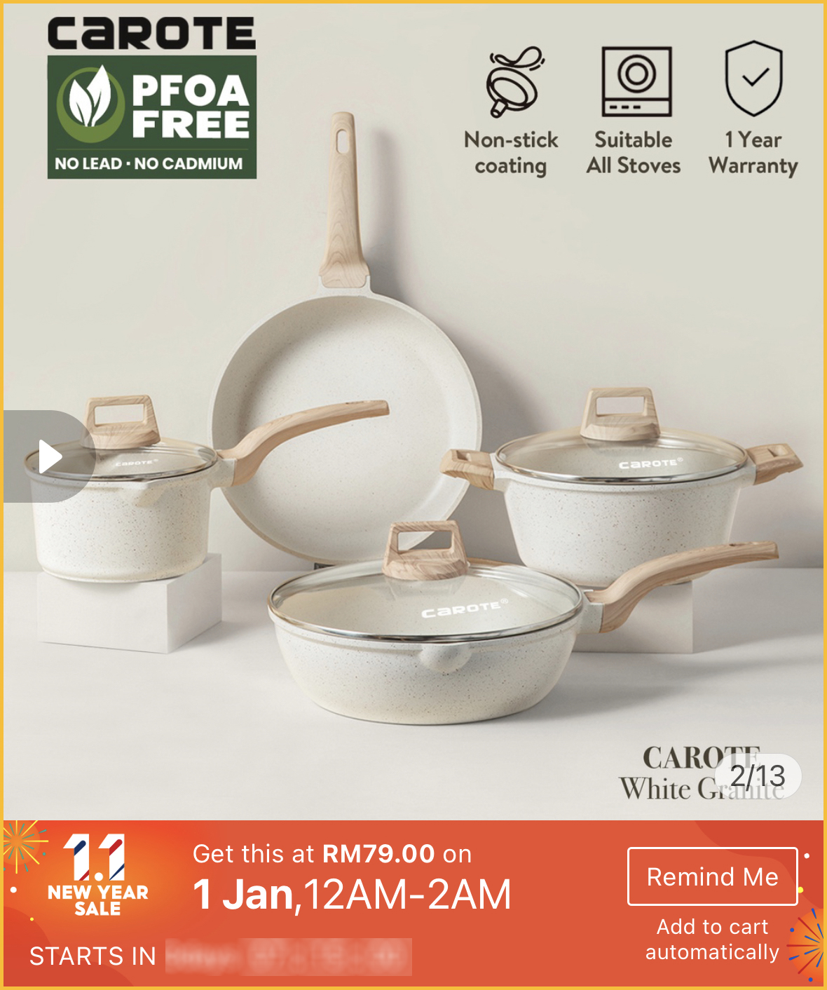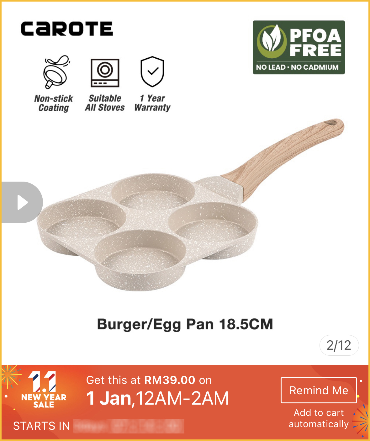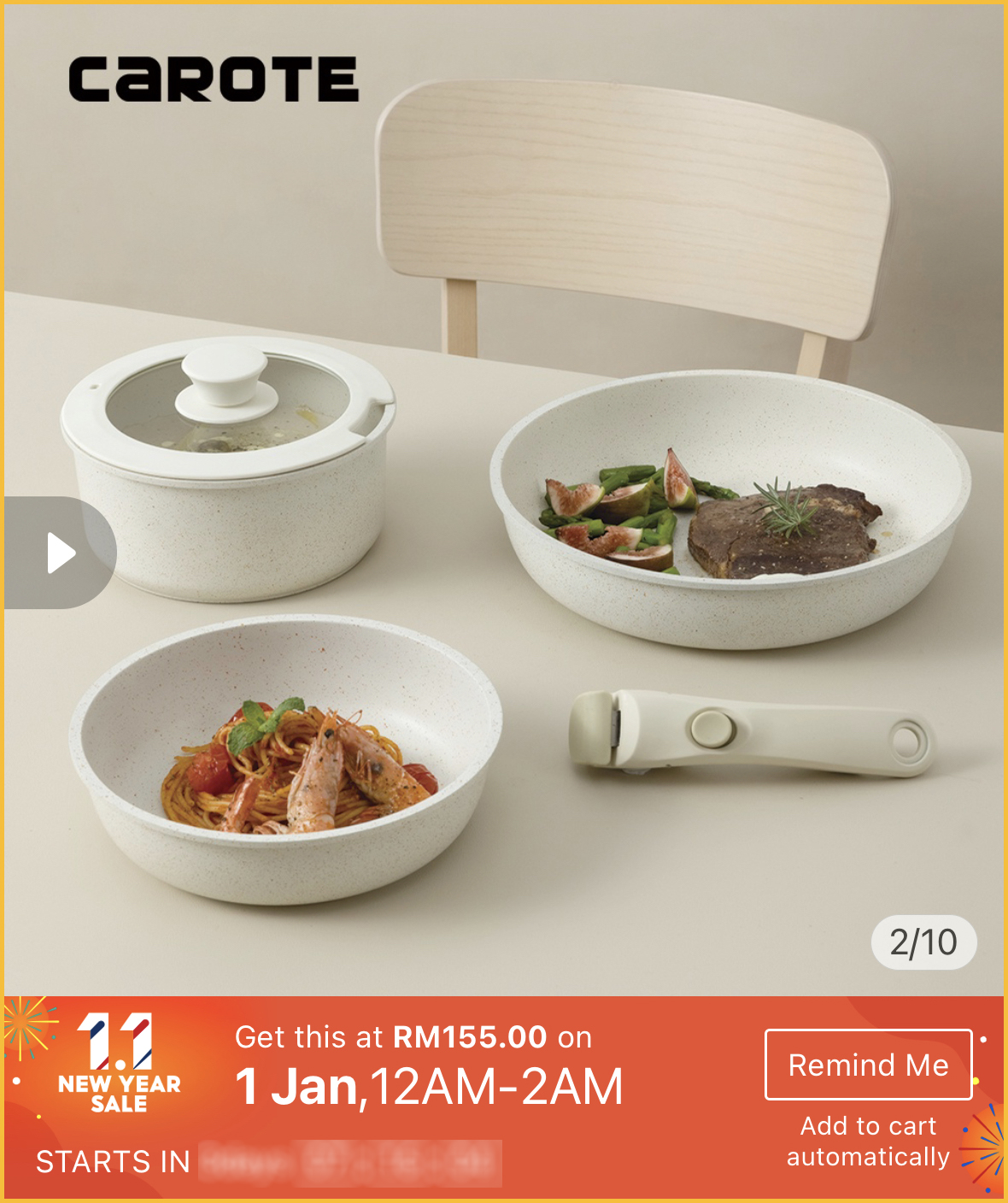 最近想要购买高颜值又品质好的不粘锅?1月1日就是好时机啦~Carote x Shopee 官方网店举办1月1日新年大优惠,不粘锅最低只需不到RM40!