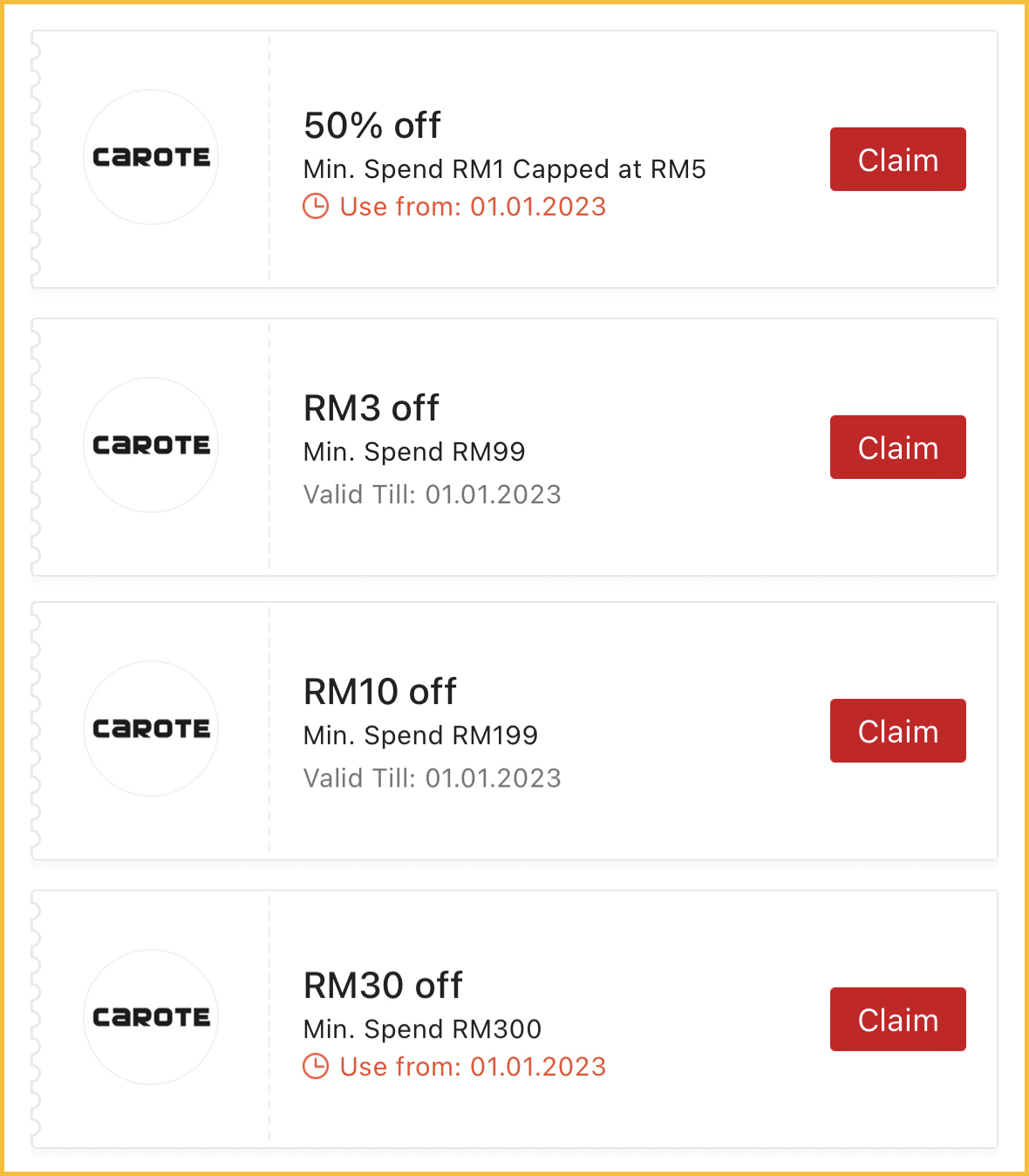 ▼ 别忘了领取 Carote 店铺送出的折扣优惠券,1月1日当天才能使用哦!