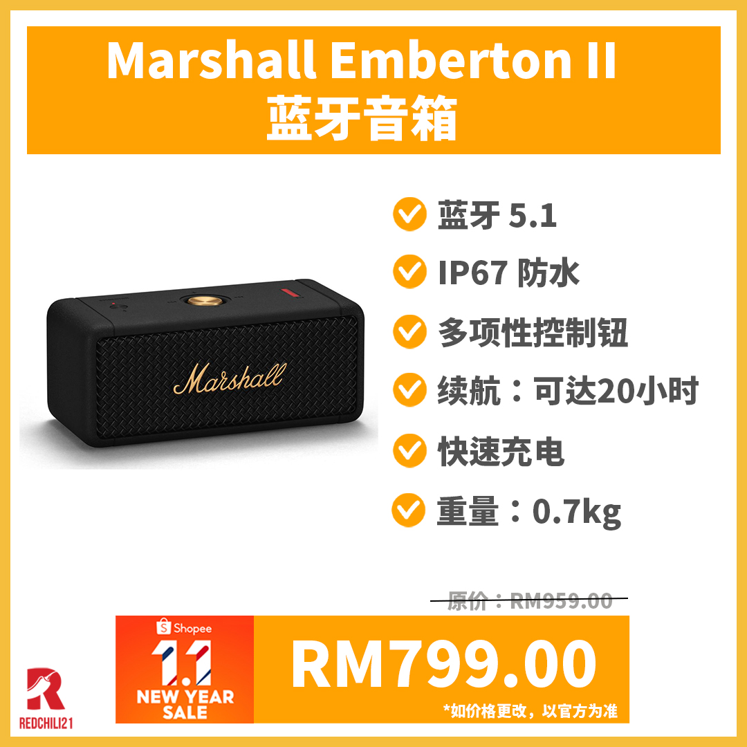 ⑦ Marshall Emberton II 防水无线蓝牙音箱