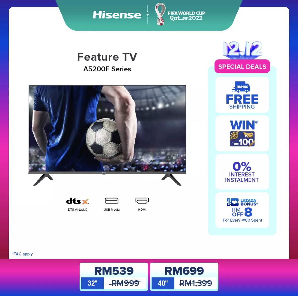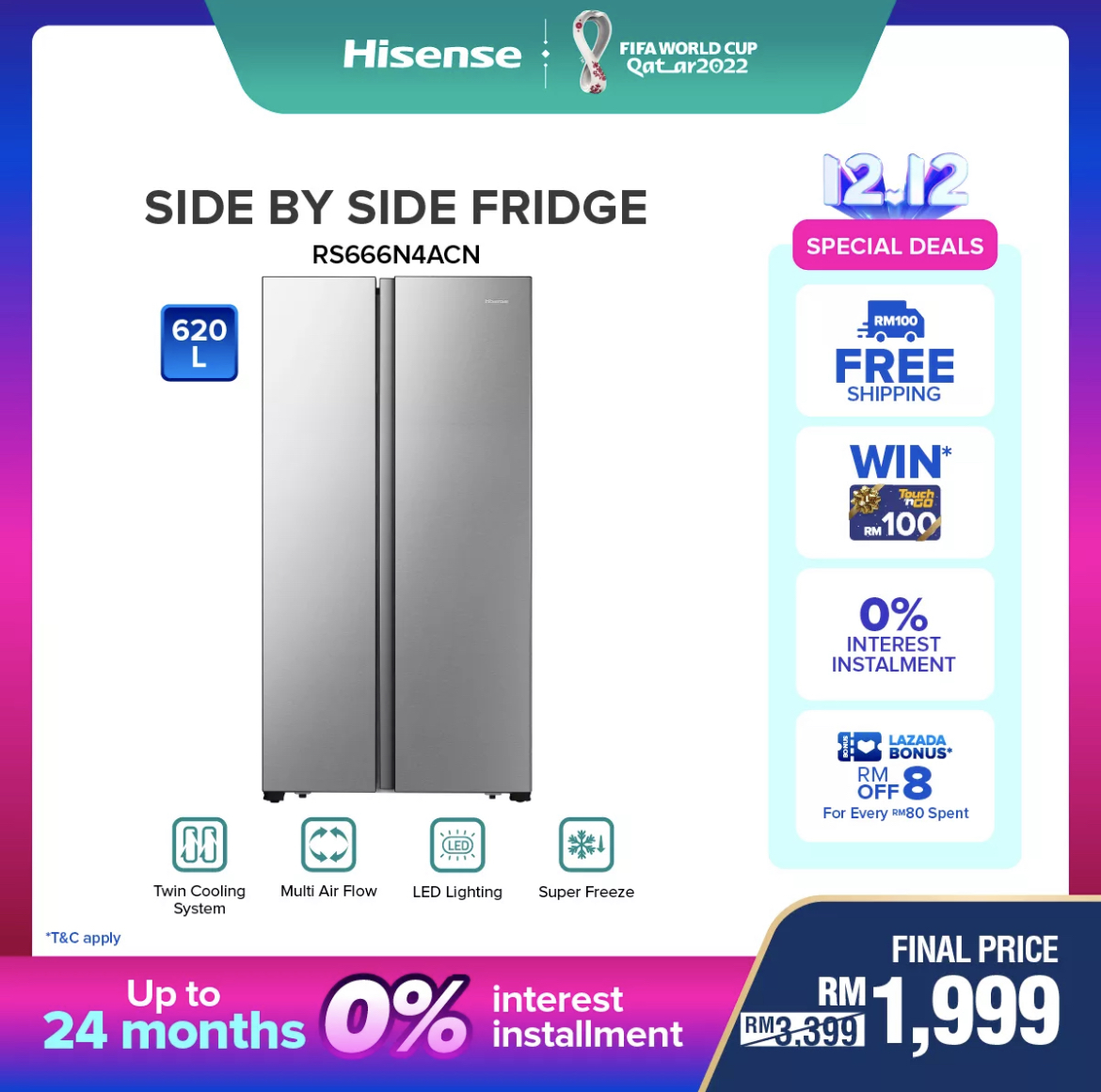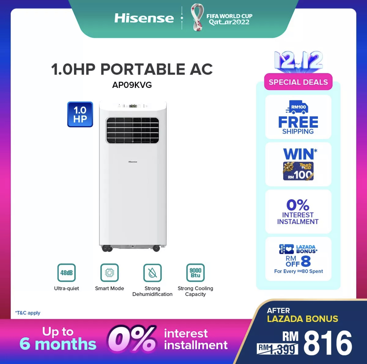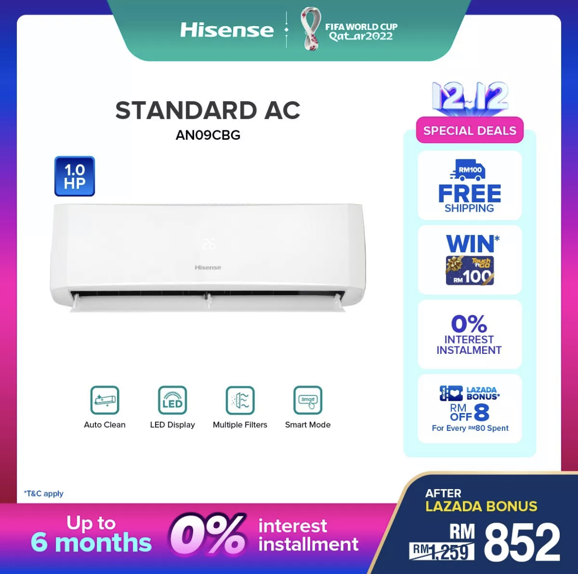 Hisense x LazMall 举办12.12大优惠,家电折扣高达40%!除了额外折扣券,还有 Lazada Bonus 每RM80就扣RM8!这次不买一定会后悔!
