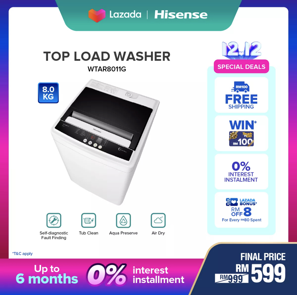▪ ③ Hisense WTAR8011G 8.0KG Top Load Washer 洗衣机