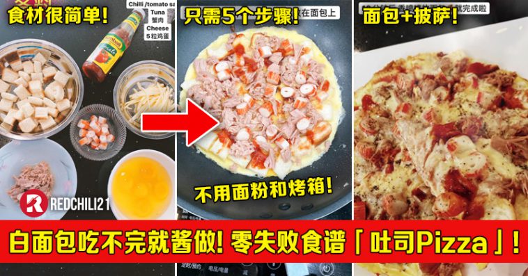 一名大马网友在面子书分享了自制「面包Pizza」的超神方法!不需要揉面团也不用烤箱,成功率高达100%!最重要的是:好吃!