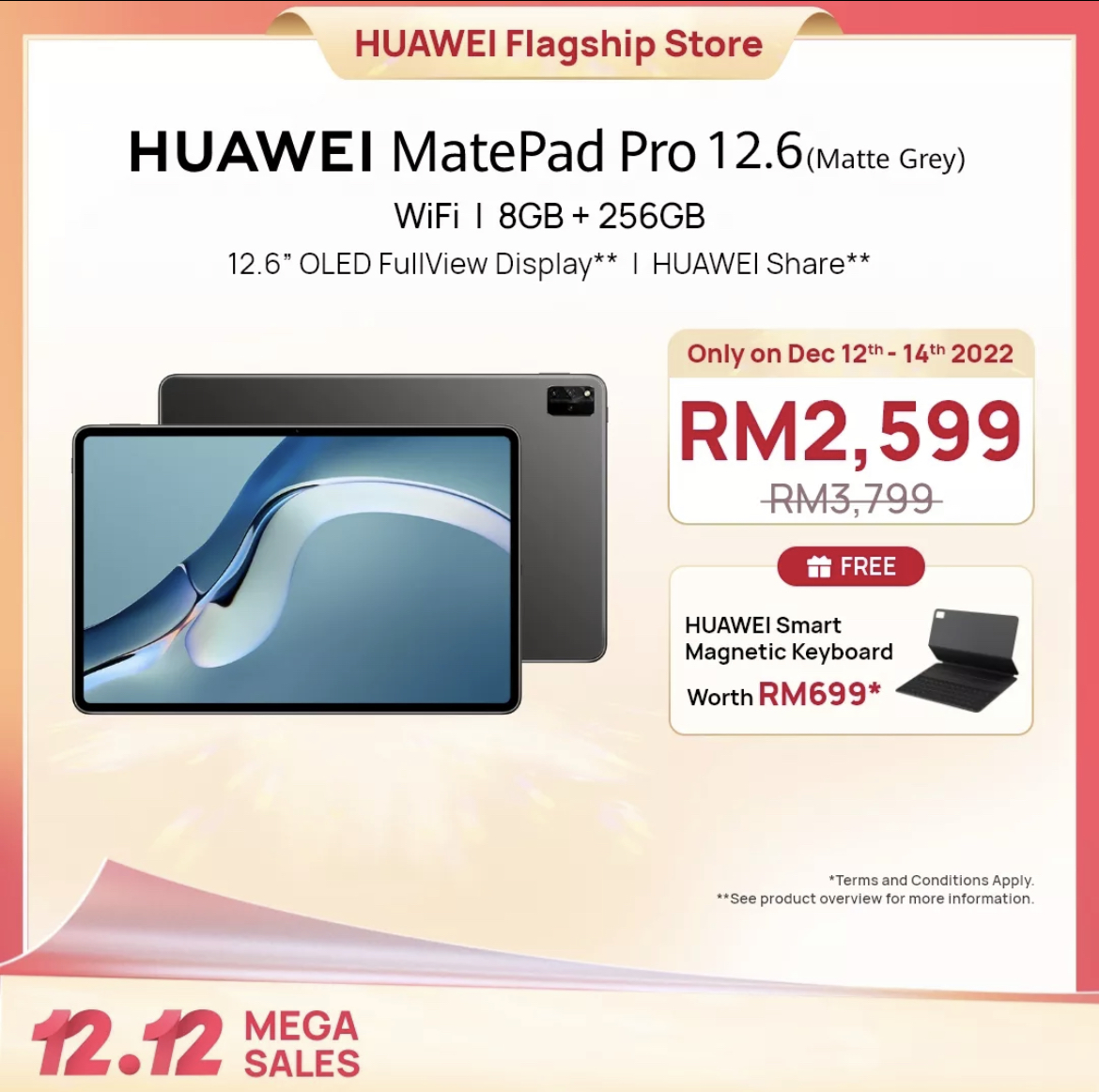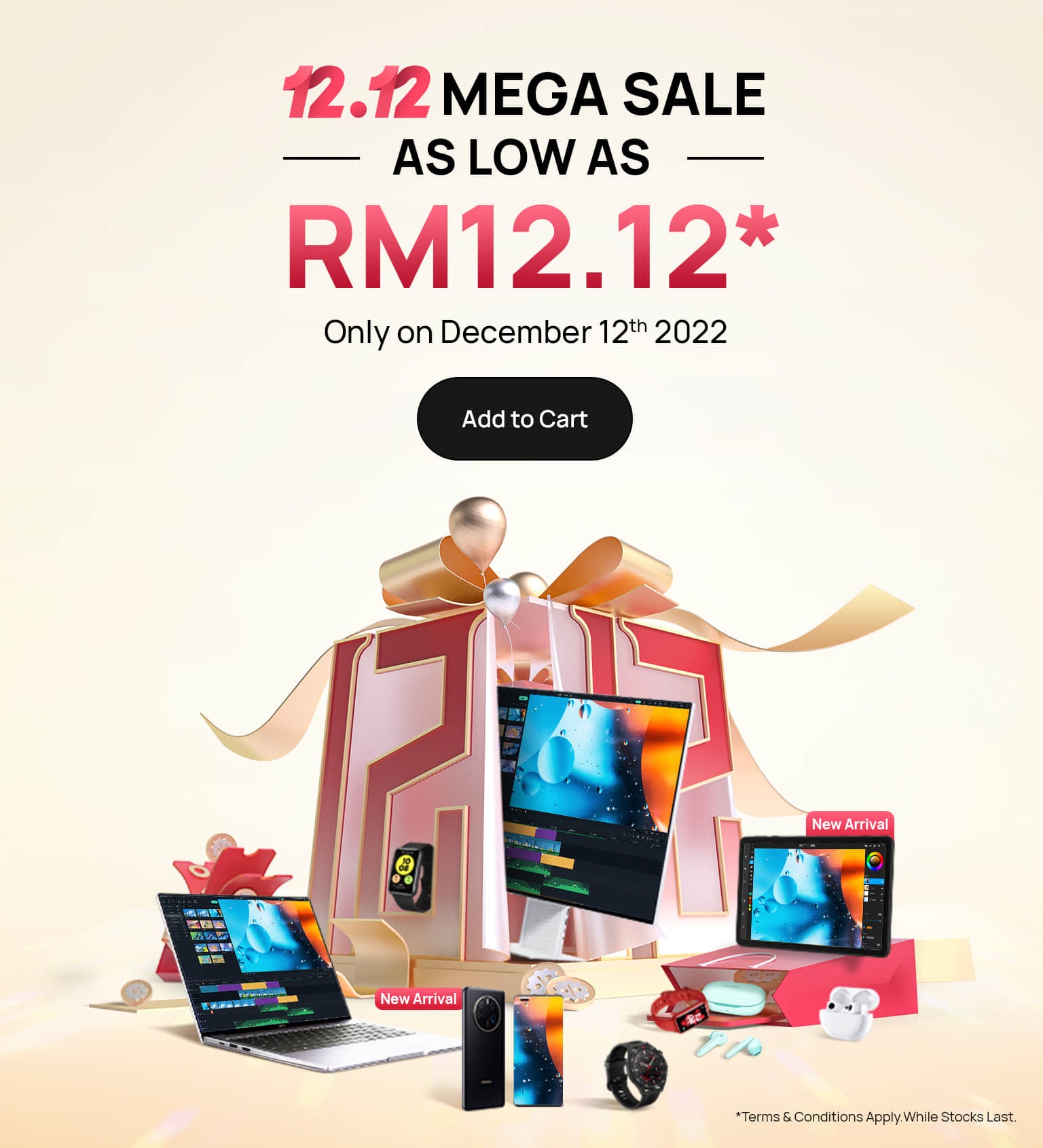 华为的粉丝们这次买起来咯~Huawei Lazada 官方店铺 将在12月12日举办年终大促销,智能手表、手机、平板电脑、笔电等等折扣高达RM1,289,最低只需RM12.12!