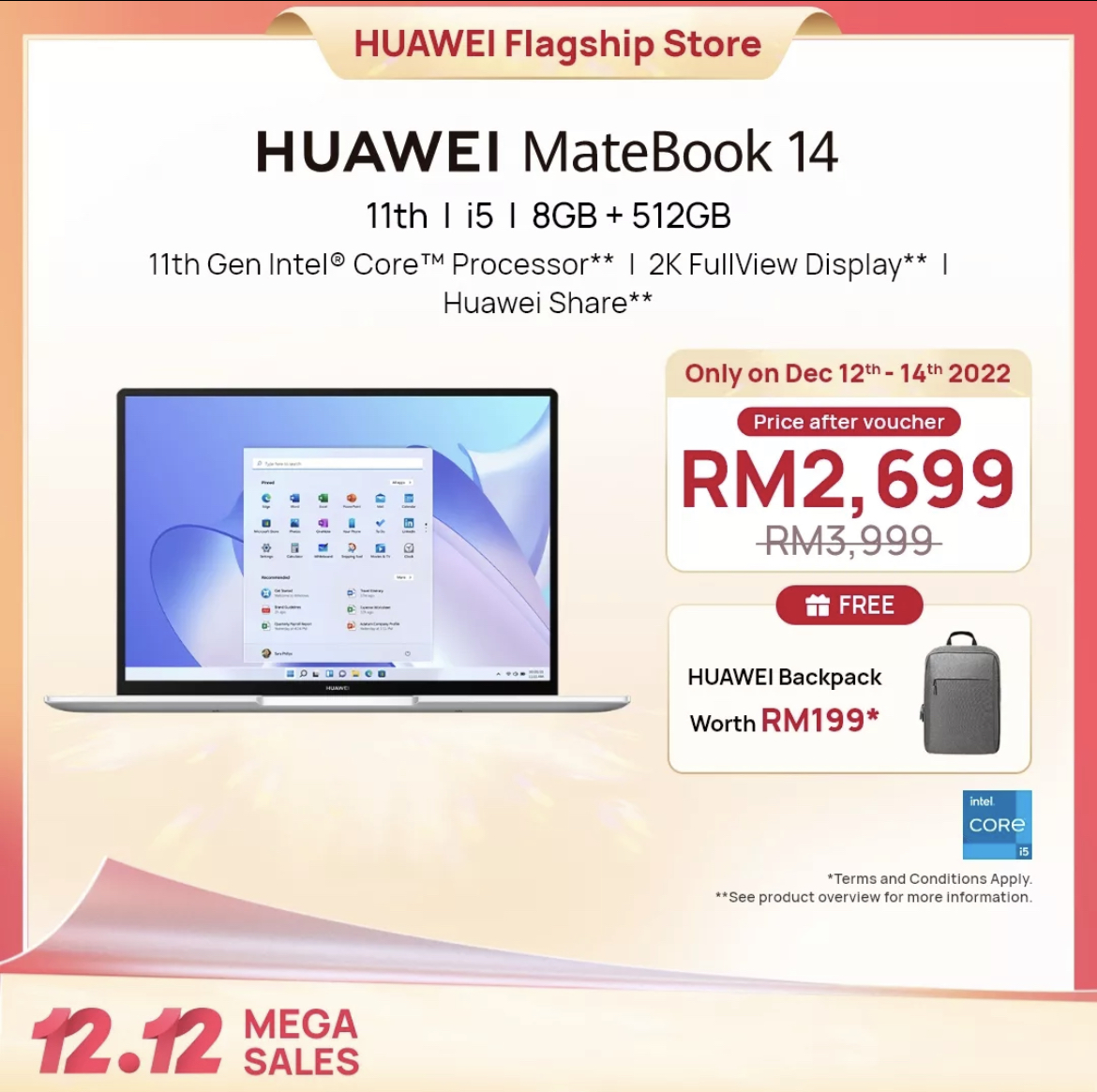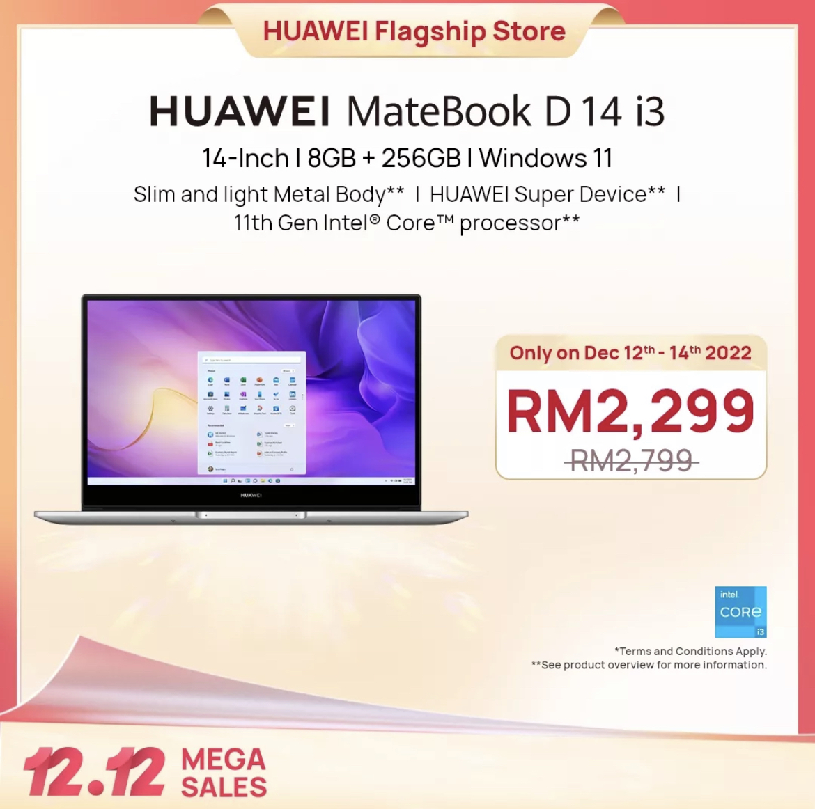 ▼ ① HUAWEI MateBook D14 Intel® Core™ 11th Gen Laptop