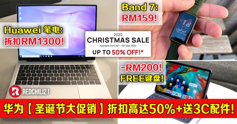华为的粉丝们这次买起来咯~Huawei Lazada 官方店铺 即日起举办圣诞节大促销,智能手表、手机、平板电脑、笔电等等折扣高达50%!