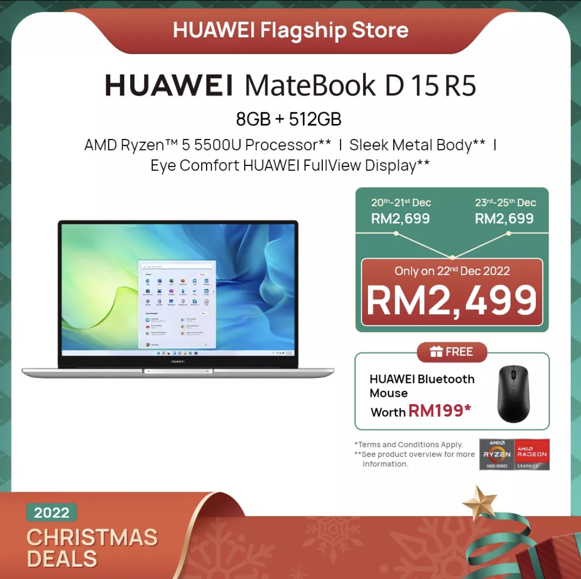 ▼ ② HUAWEI MateBook D15 Laptop 附送蓝牙滑鼠 (价值 RM199)