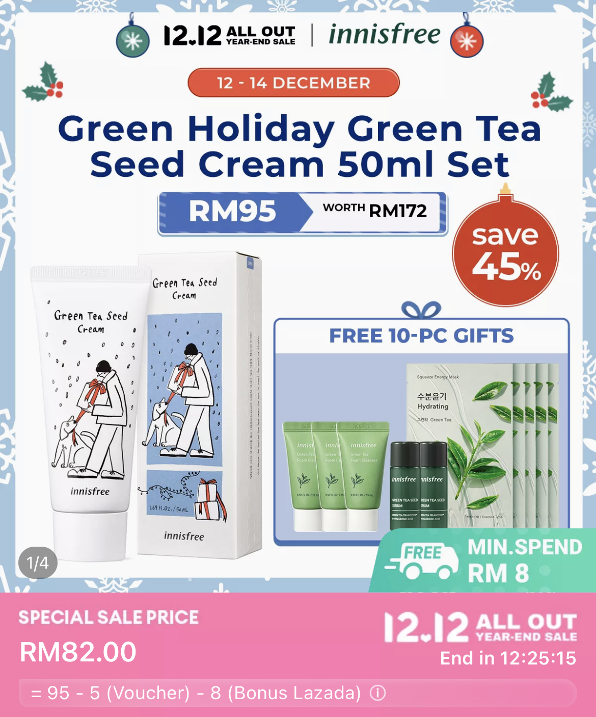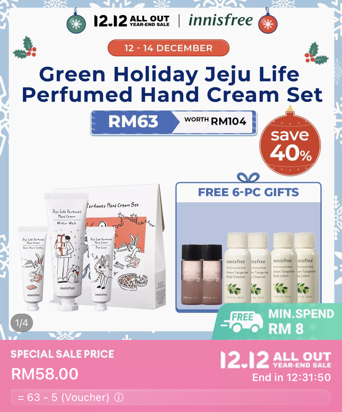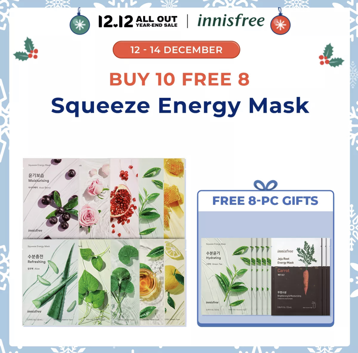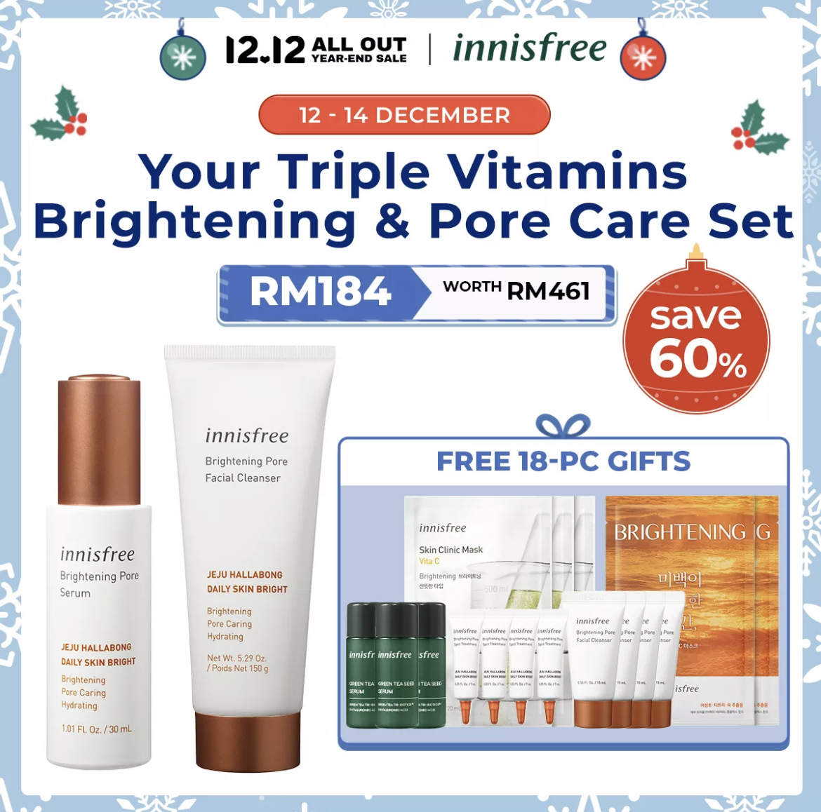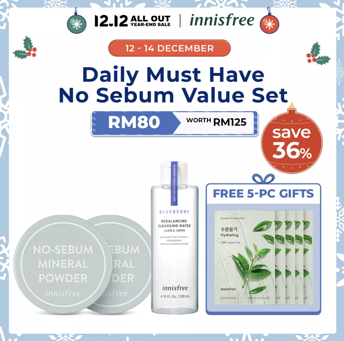 现在买还来得及!Innisfree Lazada 旗舰店连3天12.12促销活动,护肤品折扣高达55%!购买套组附送赠品,最低RM75即可入手!