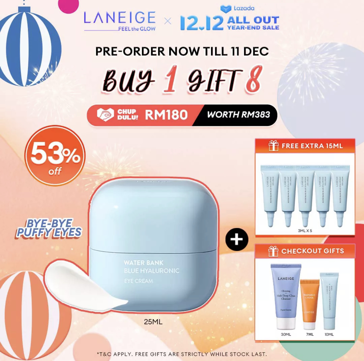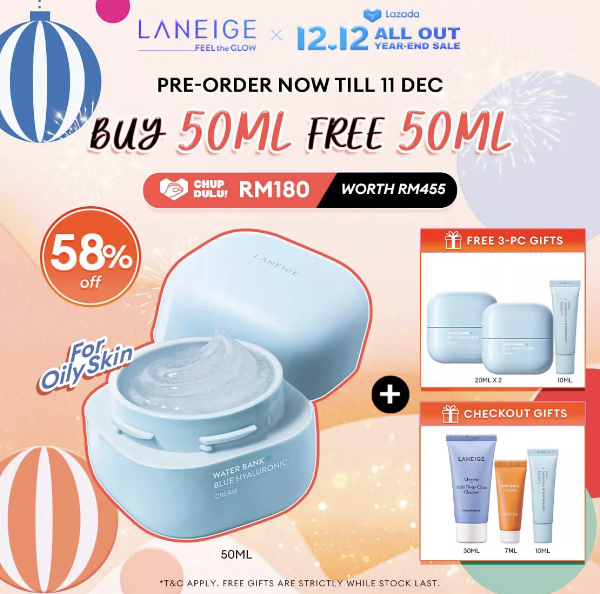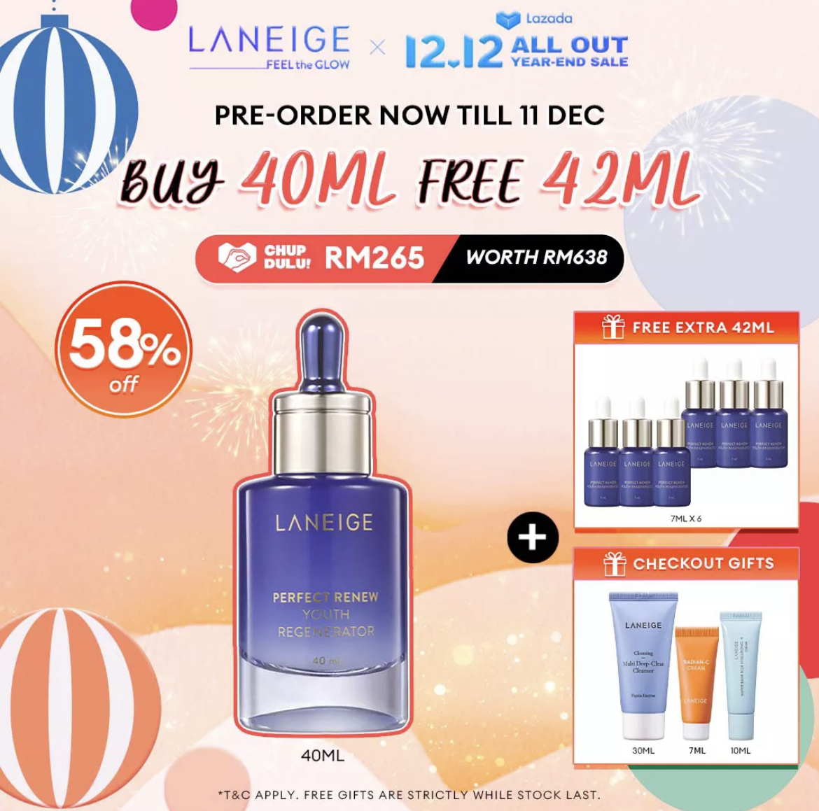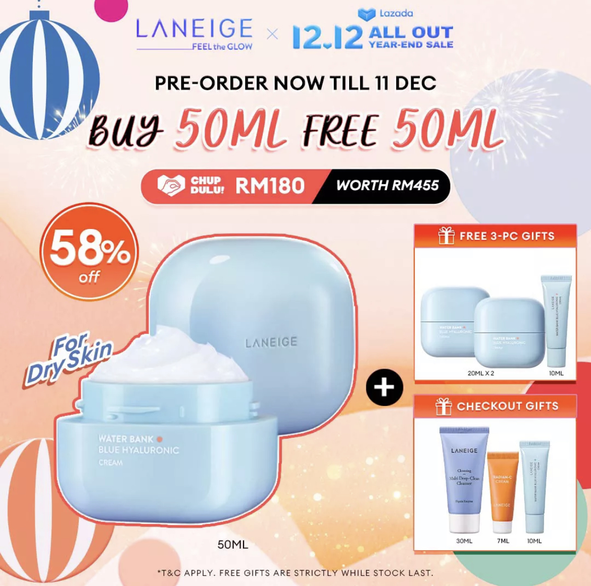 家里的护肤品快要用完了?是时候补货啦~知名品牌 Laneige 举办 12.12 Chup Dulu 预购大促销,折扣高达63%!超值得!