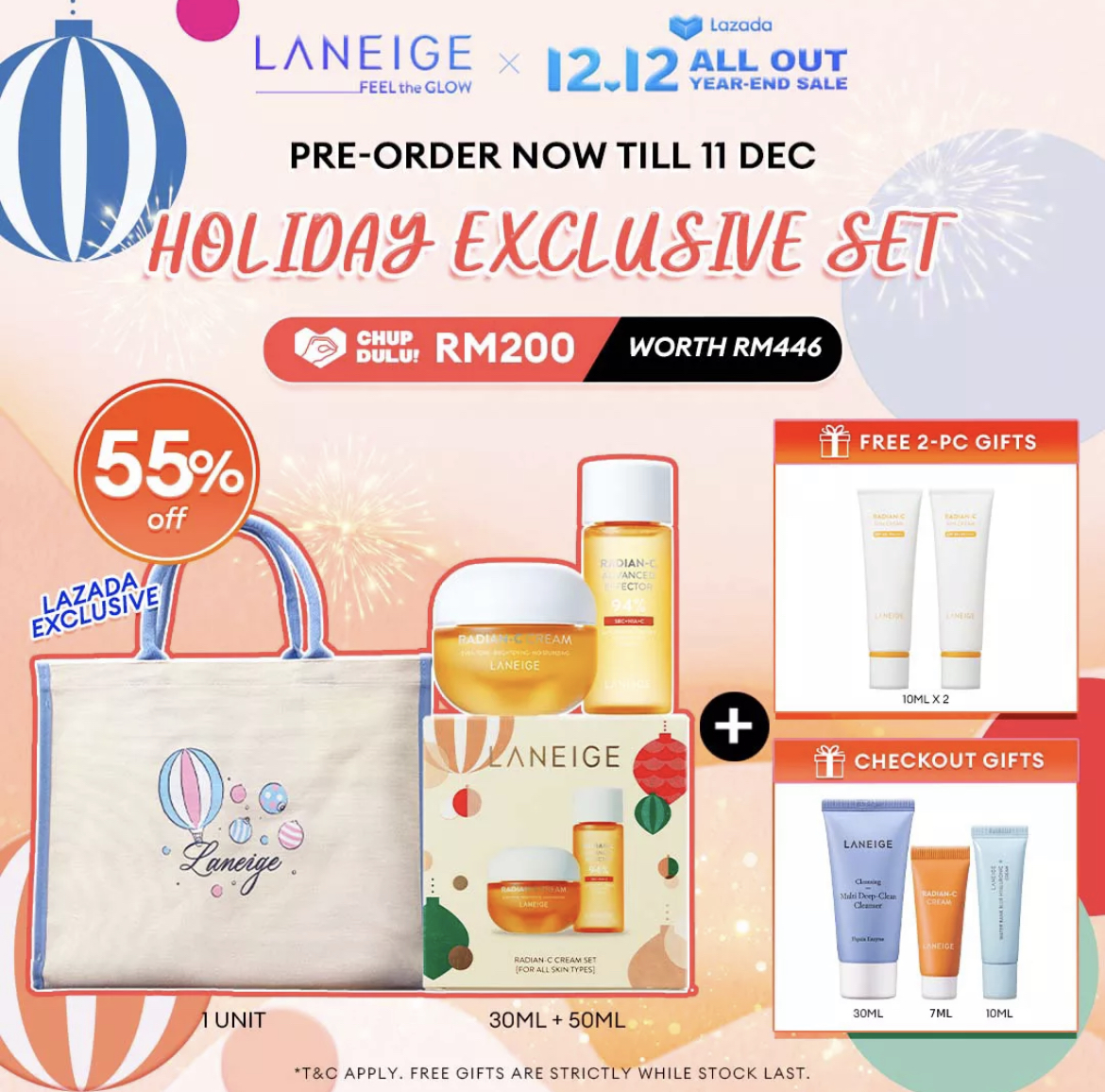 Laneige旗舰店【12.12 Chup Dulu】预购大促销!护肤品套组折扣高达63%!