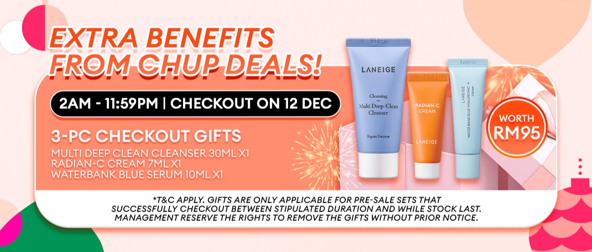 ▼ 凡购买 Chup Dulu 优惠的可额外获得价值RM95的 Laneige 赠品!