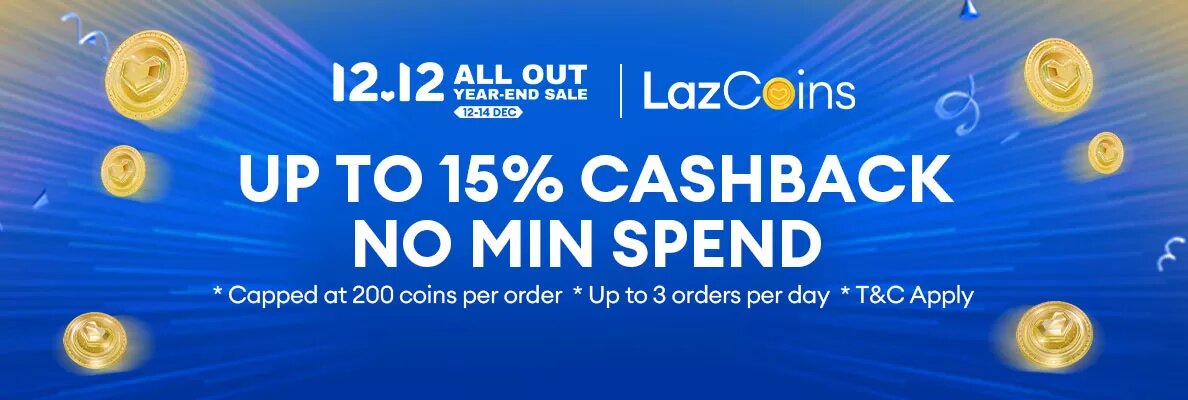 收集 LazCoins!双十二促销期间,购买指定商品并使用 LazCoins 可额外获得高达15%的现金回扣!一单仅限200 coins,一天可多达3单哦!