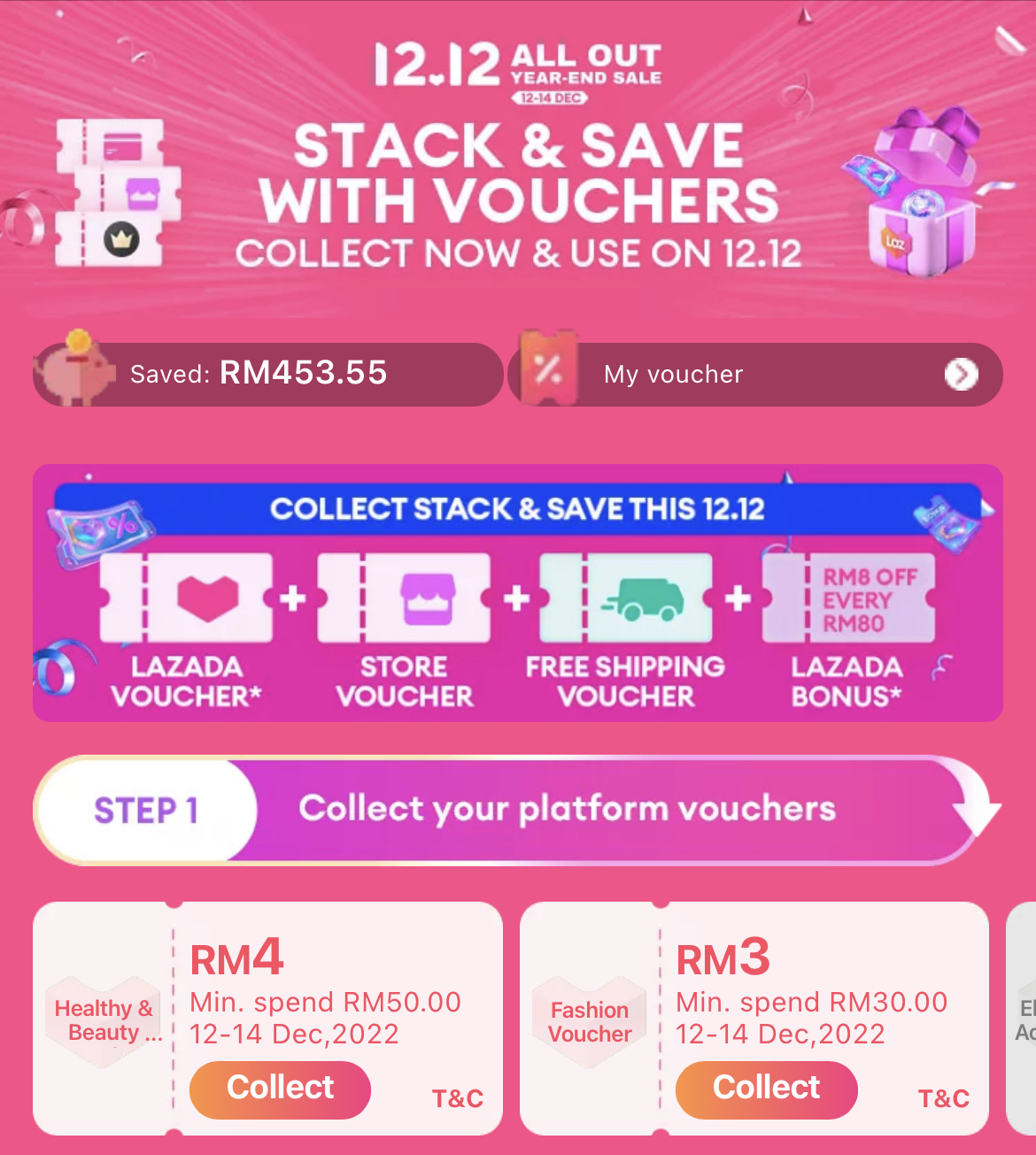 即日起collect!教你如何领取及使用【12.12促销】Lazada Bonus!以获得更多额外折扣!