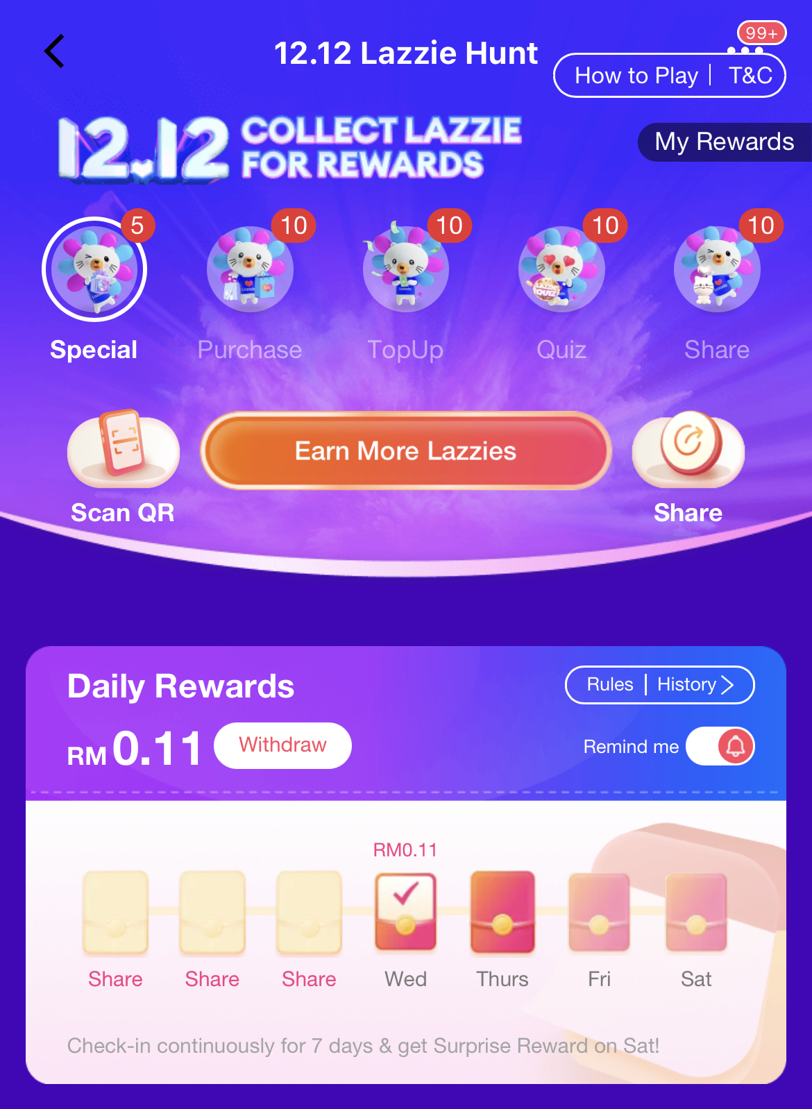每天只需收集 Lazzie Hunt 就可以兑换折扣券或免运券哦!