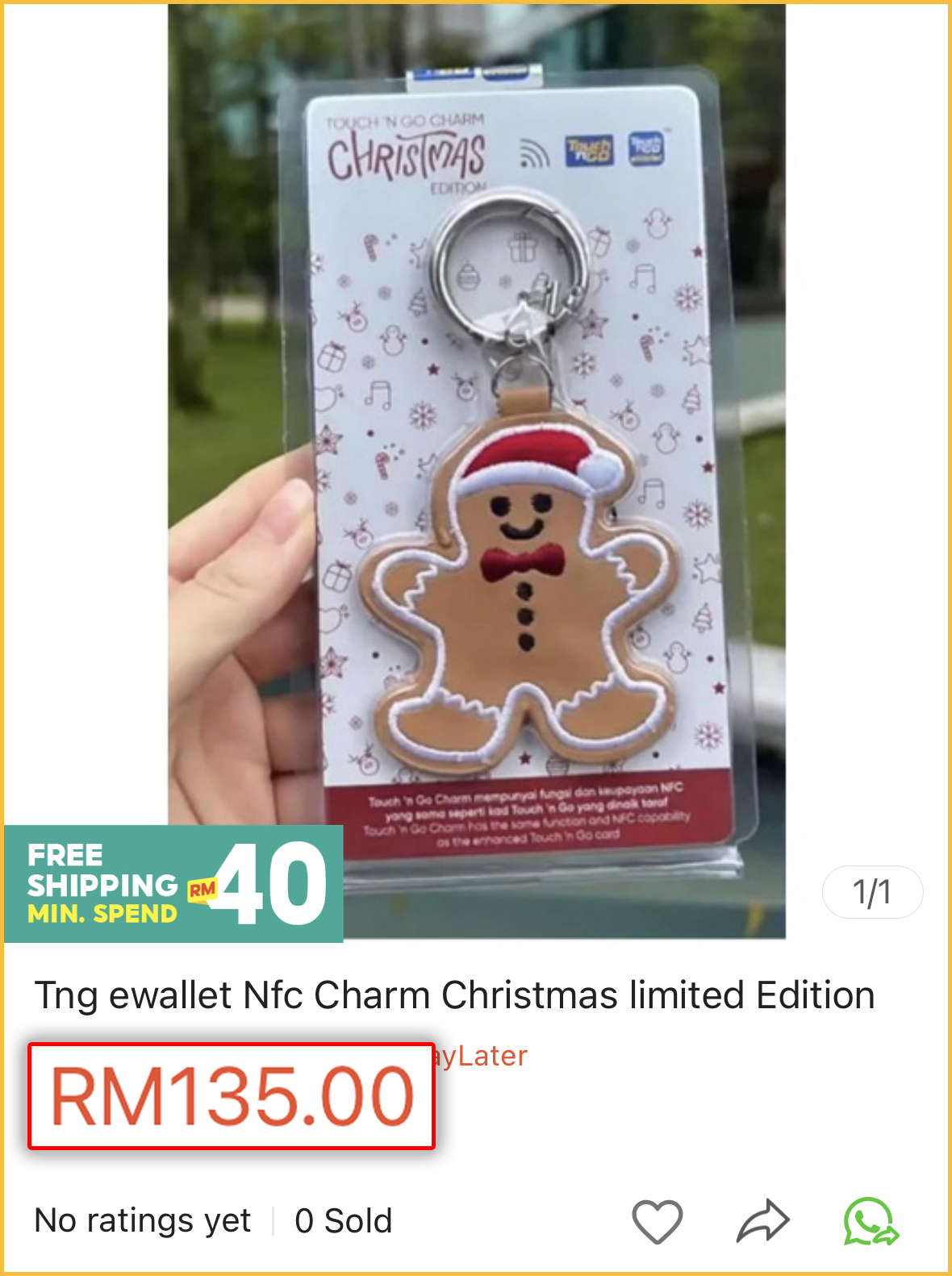 ▼ 姜饼人钥匙圈的“身价”一天内狂涨几倍!购物平台有卖家拍卖一个RM135!