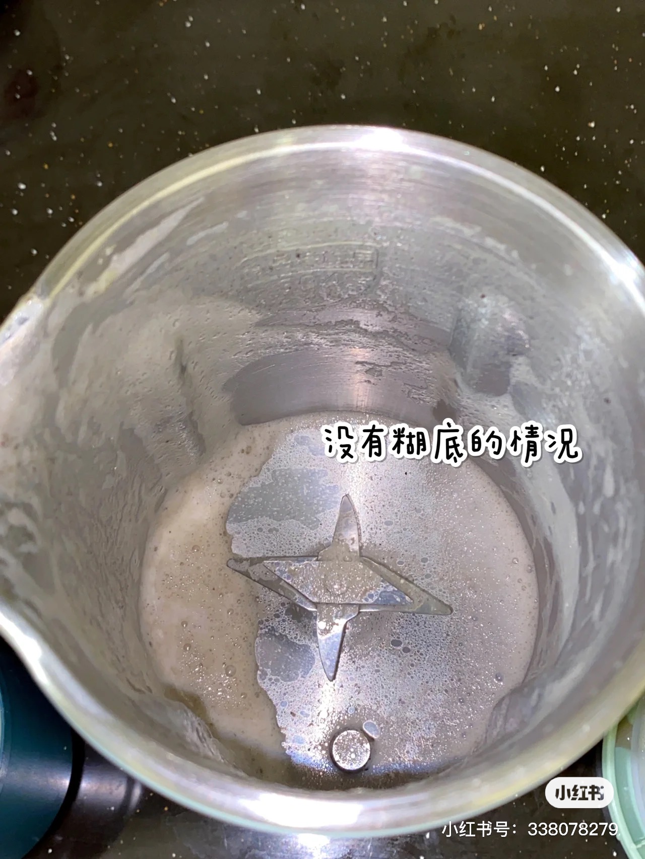 我打的算是浓豆浆,不过目前没有糊底的情况。切记不能加牛奶/糖进去打,必须打完豆浆才加牛奶/糖。