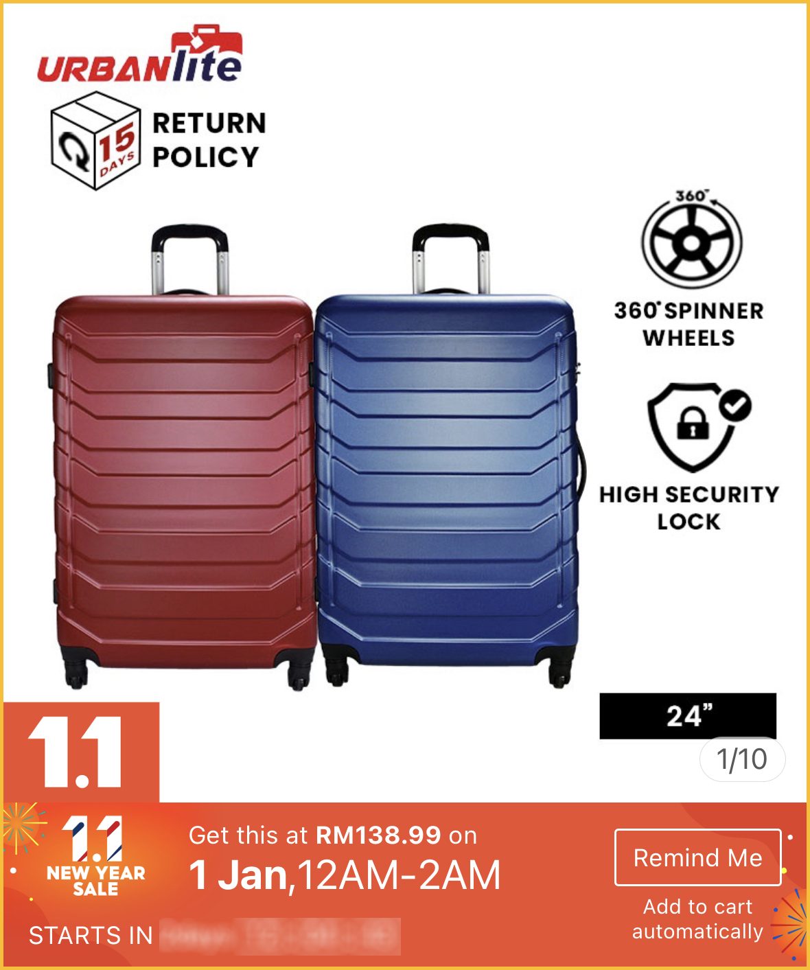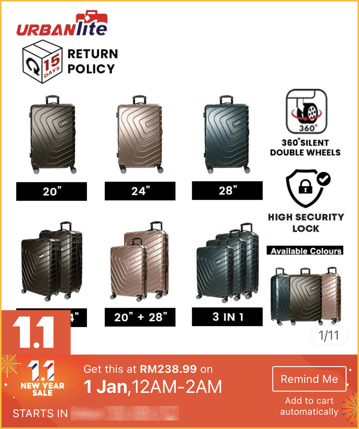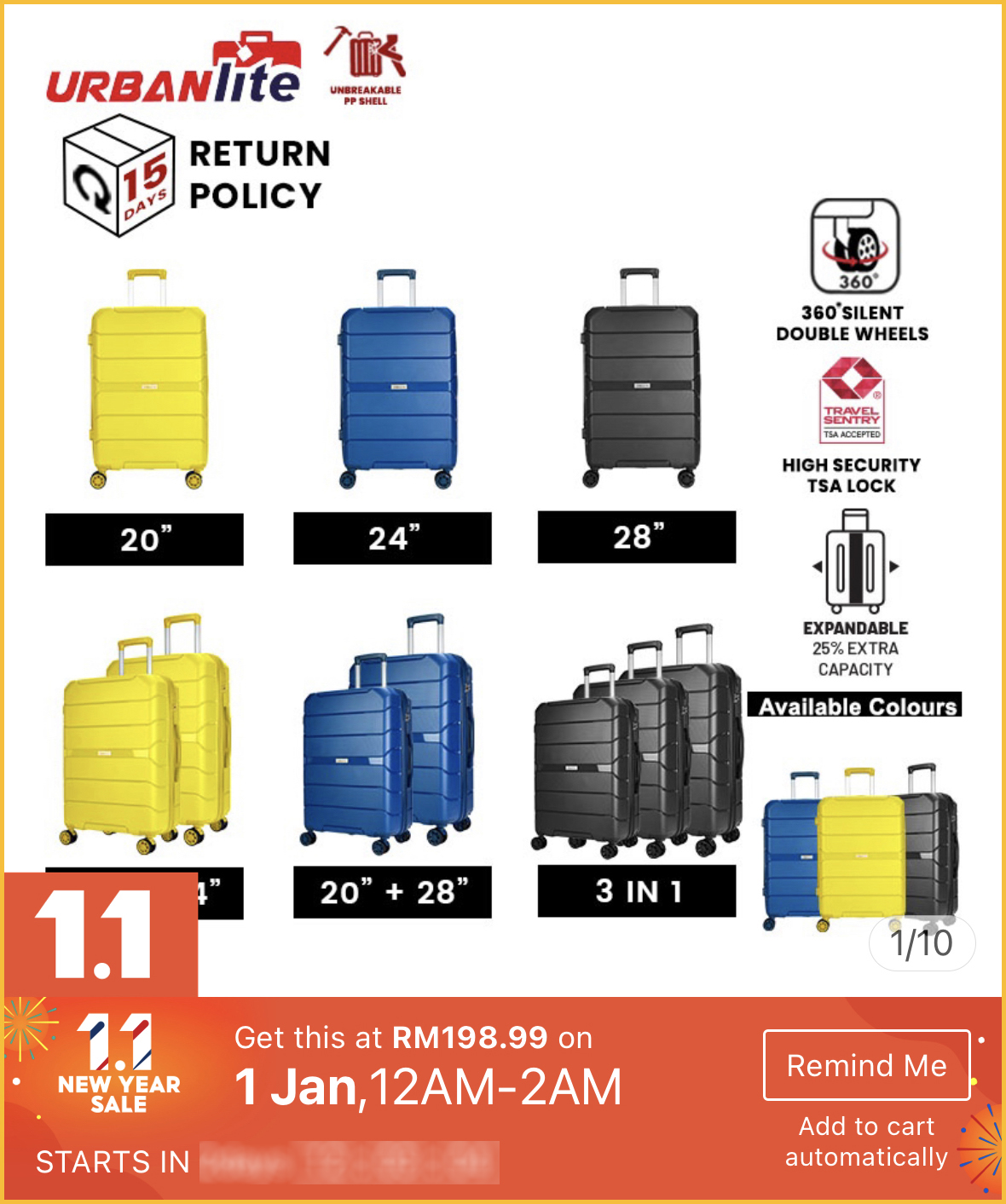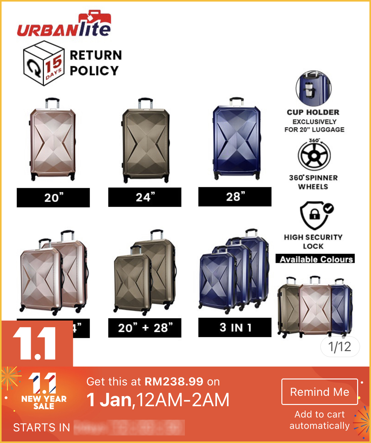 最近几个月正在计划出国旅行?那行李箱就是必不可少的!配合 Shopee 1月1日新年促销,Universal Traveller 也举办特价优惠,多款行李箱折扣后超便宜!