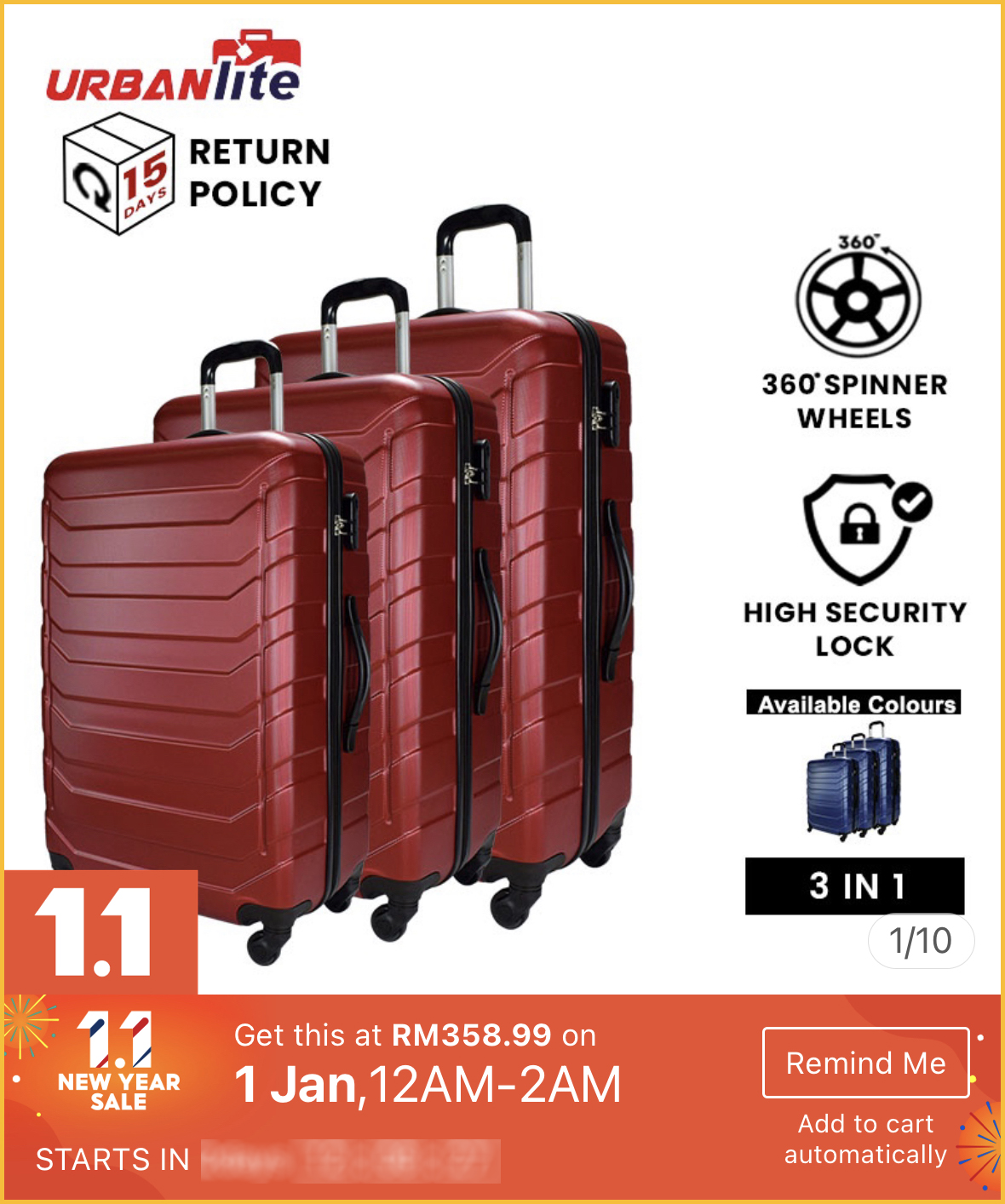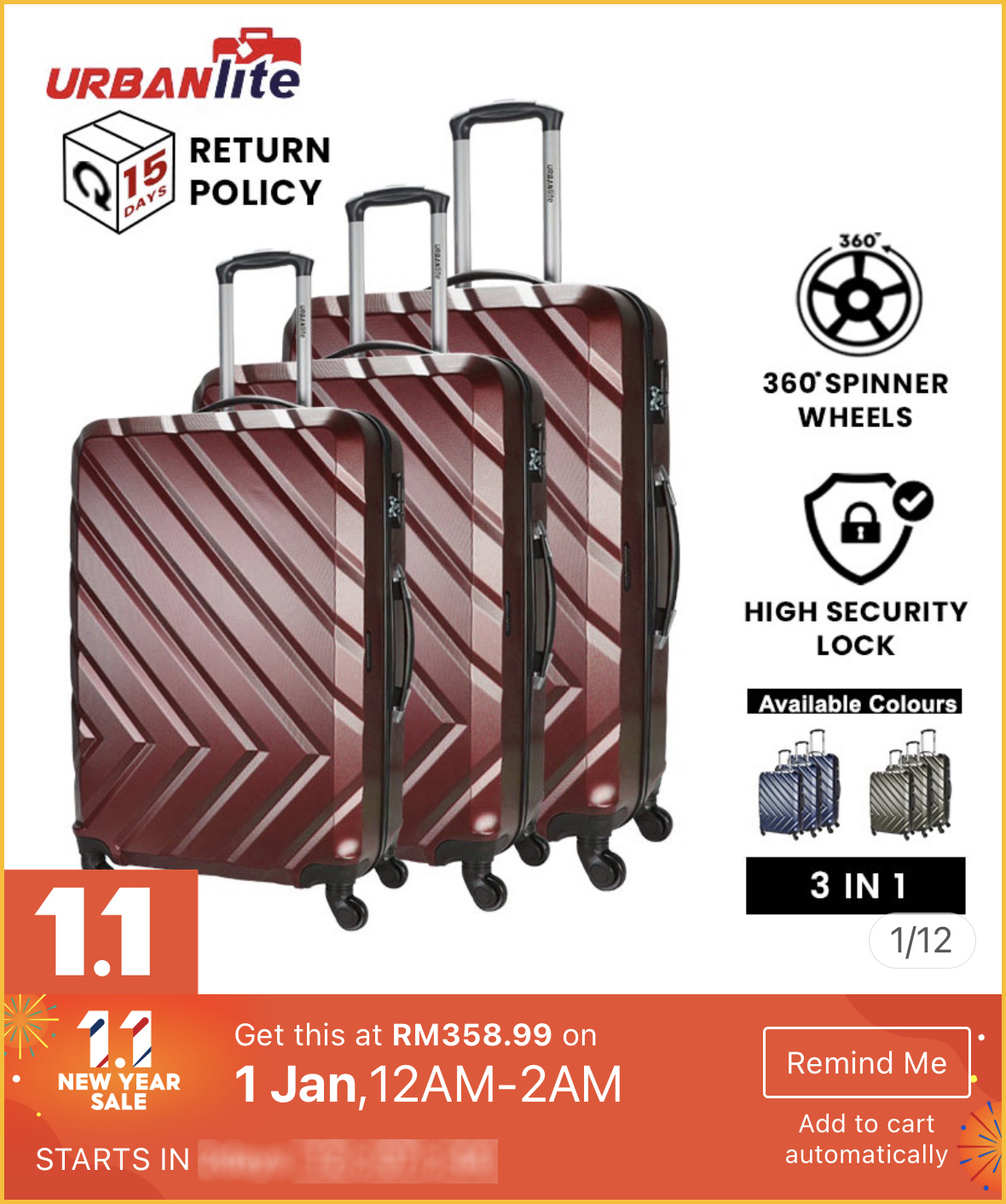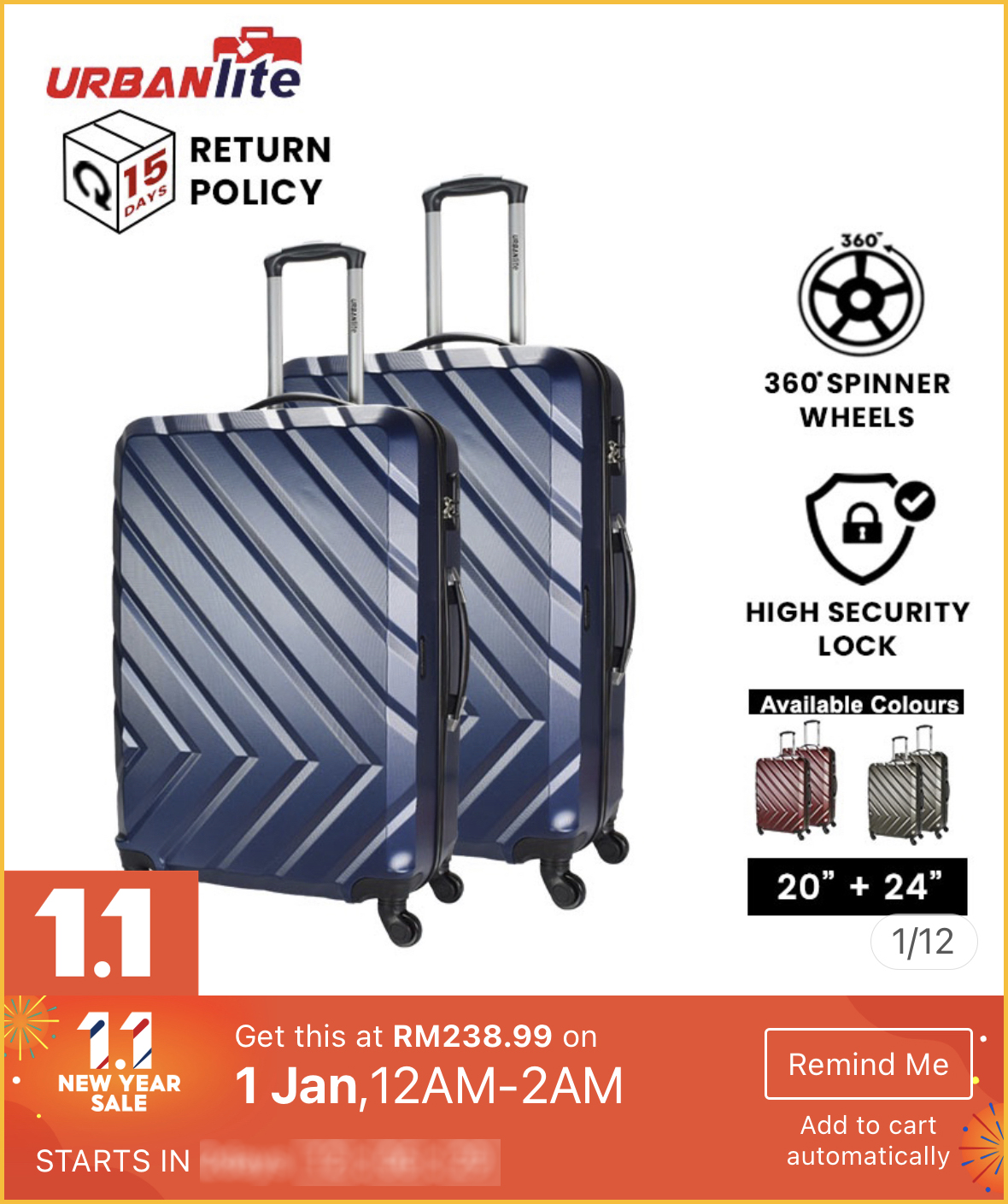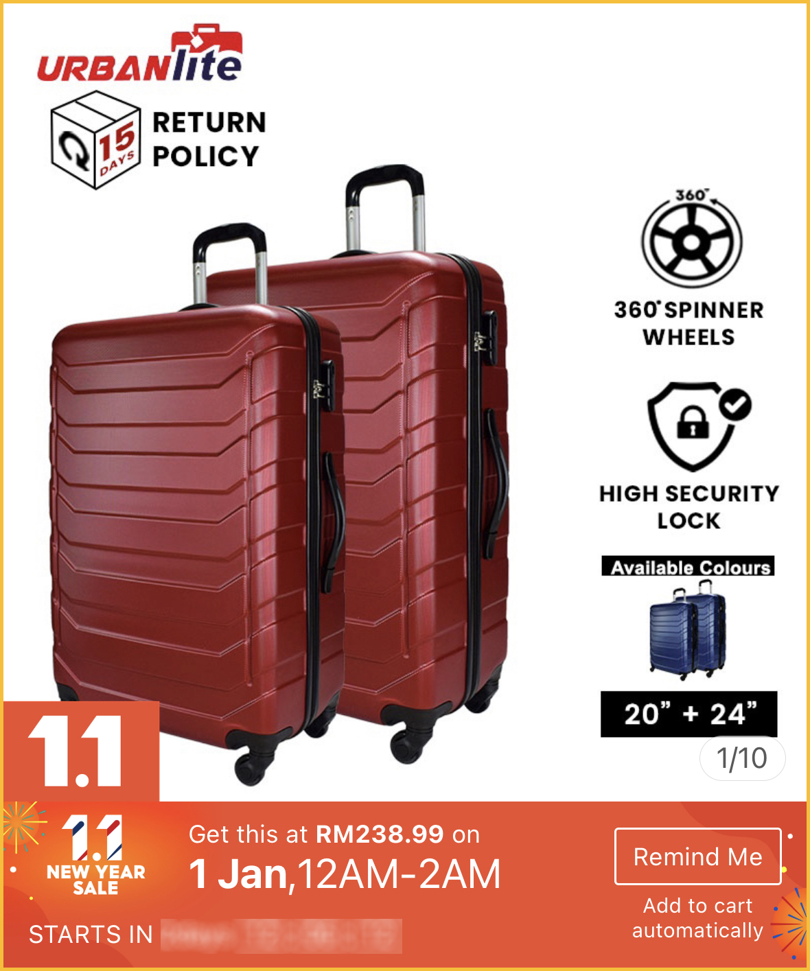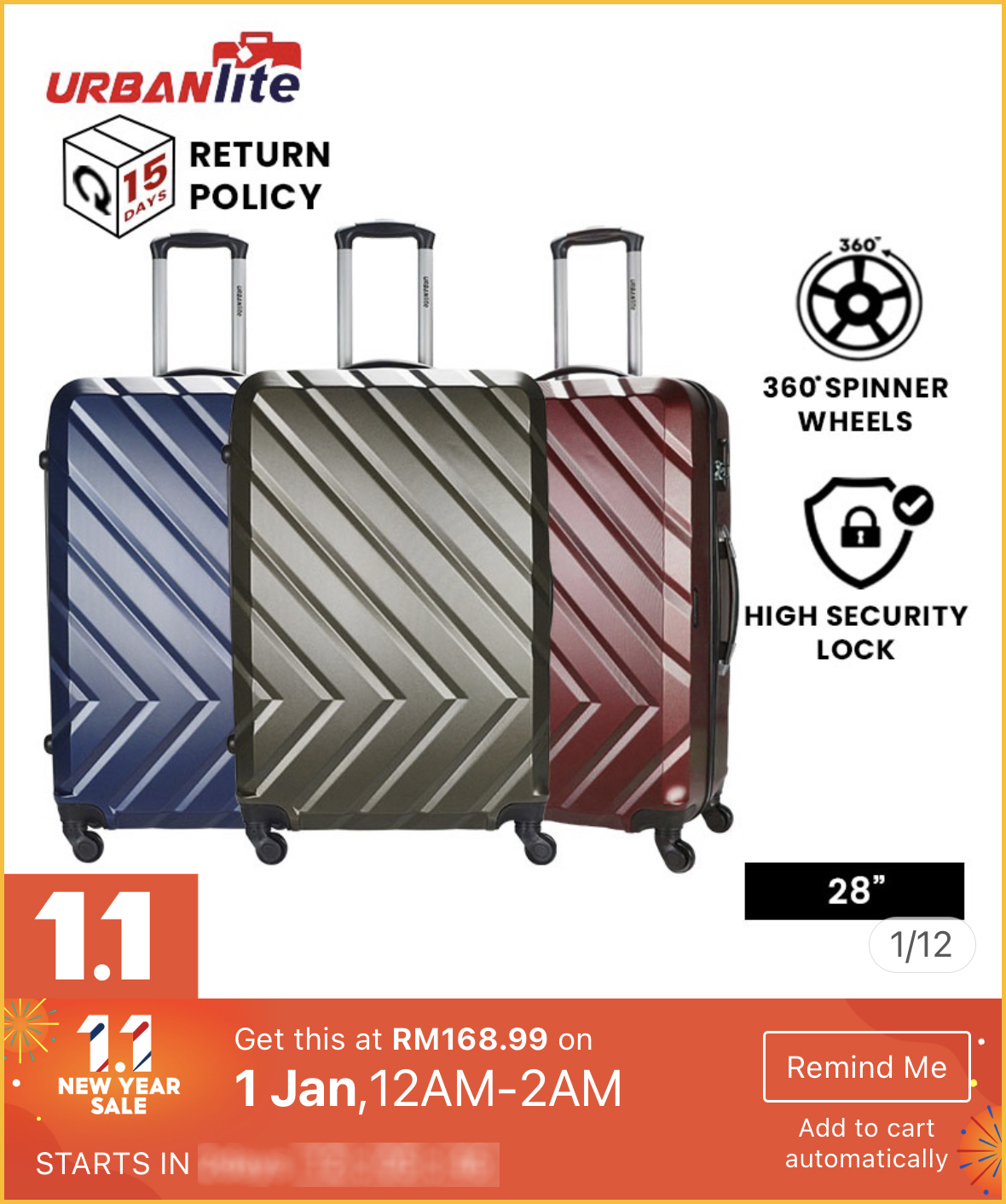 最近几个月正在计划出国旅行?那行李箱就是必不可少的!配合 Shopee 1月1日新年促销,Universal Traveller 也举办特价优惠,多款行李箱折扣后超便宜!