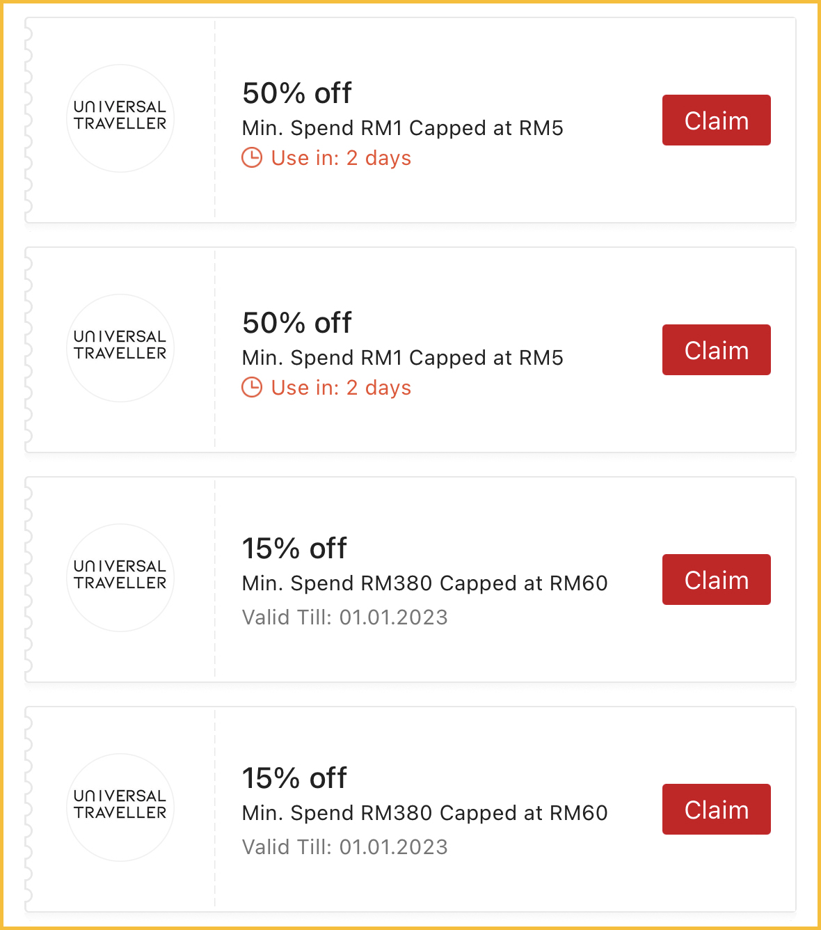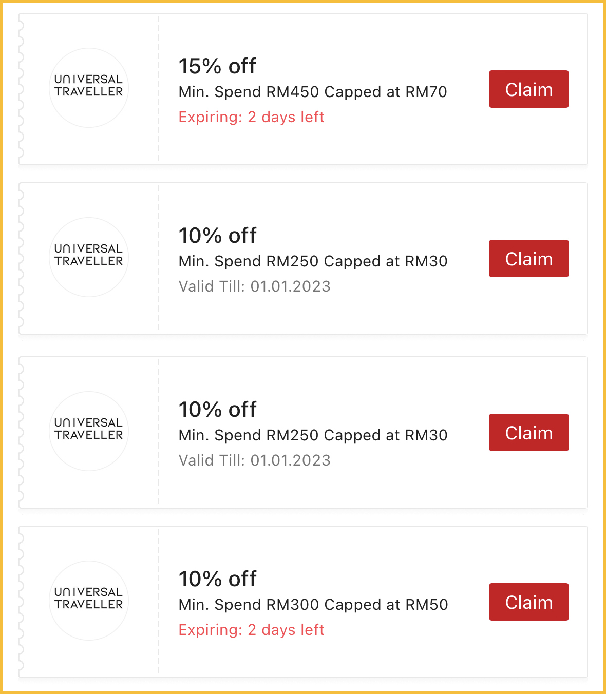 ▼ 领取 Universal Traveller 店铺送出的优惠券,以享有更多额外折扣!