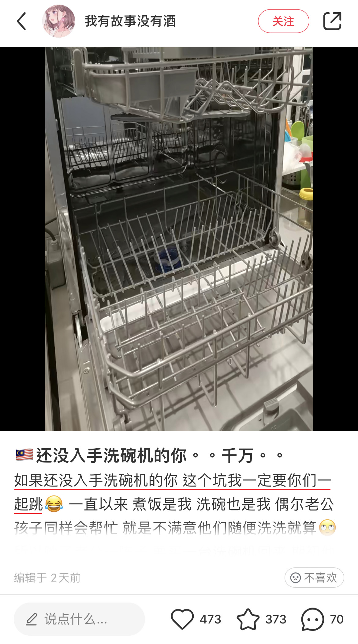 如果还没入手洗碗机的你,这个坑我一定要你们一起跳!一直以来煮饭是我、洗碗也是我,偶尔老公、孩子同样会帮忙,就是不满意他们随便洗洗就算。
