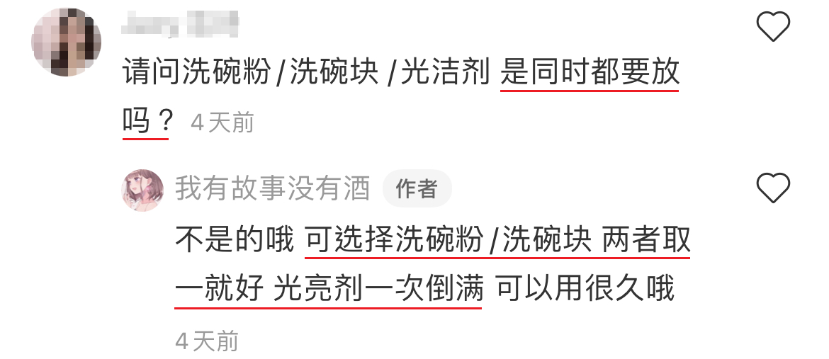 • 光亮剂 一次放满就能用很久,所以不需要每次加。洗碗后你就会发现洗后的碗是没有水渍,而且是发亮的。