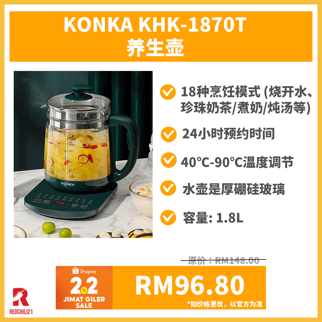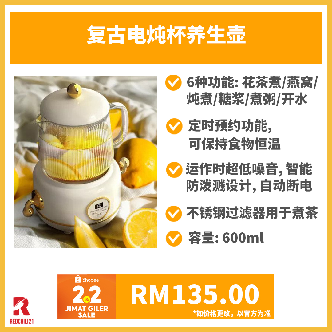 【2.2促销】6款性价比高「多功能养生壶」最低只需RM68!煮糖水/花茶/煲粥等多种煮法!