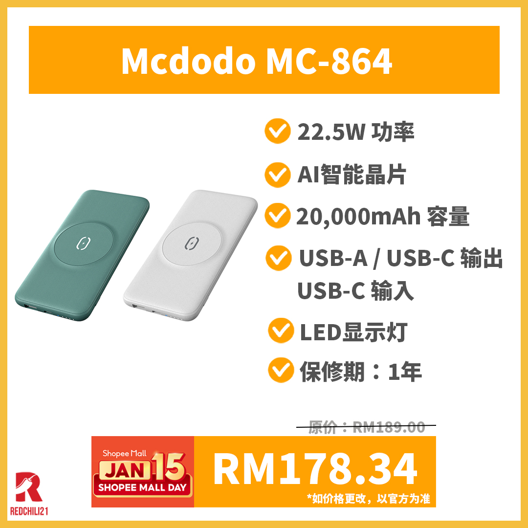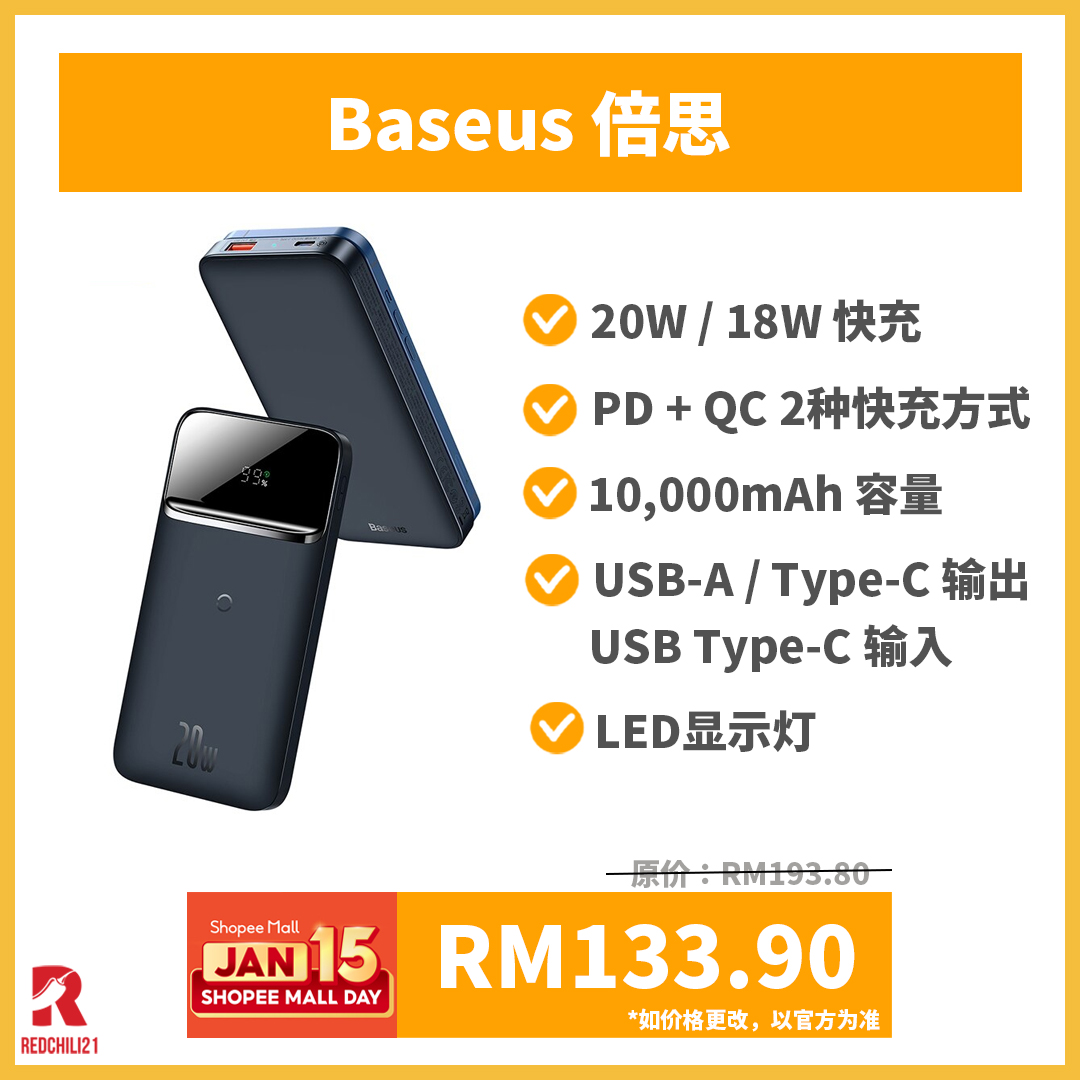 以下7款在 Shopee 高销量又高好评度的快充版充电宝,最低只需不到RM60哦!这次1月15日 Shopee Mall Day 还有更便宜的优惠价呢!