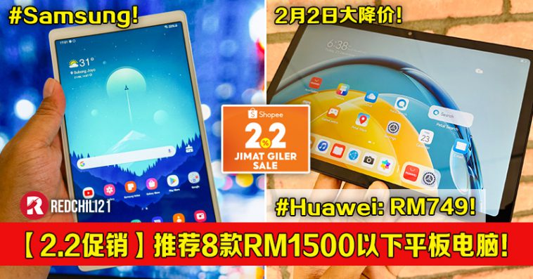 最近想要入手一台安卓平板电脑(Android Tablet),但又不知道该选择哪个牌子、哪个型号比较适合?今天就为大家推荐8款RM1500以下性价比高的平板电脑,2月2日在 Shopee 抢购更值得!