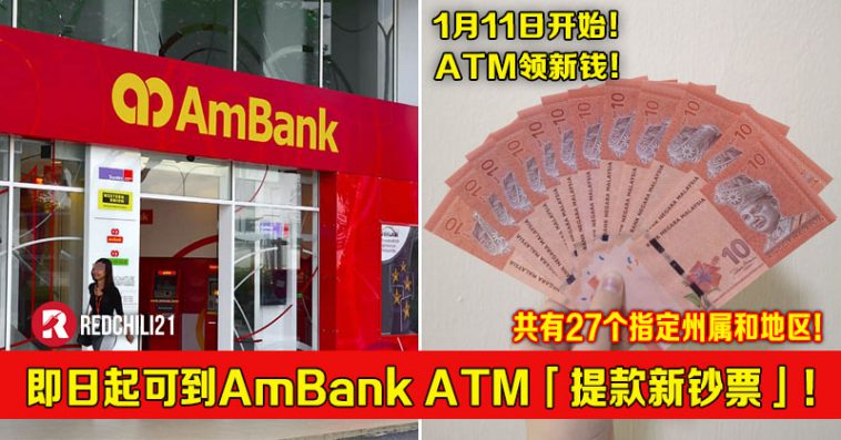 即日起可到AmBank ATM提领「RM10及RM50新钞票」!27个指定ATM地点及州属!