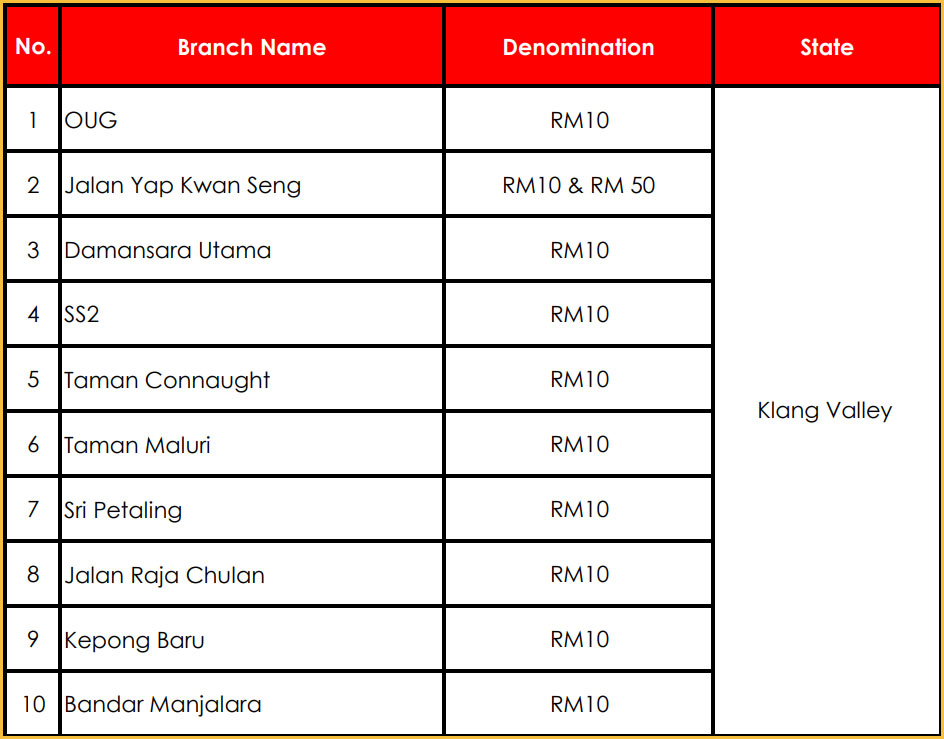 AmBank 的列表中共有27个指定地区的 ATM 提供新钞票服务,所以想要“换新钱”的朋友们,现在就一起来看看是哪些地方吧!