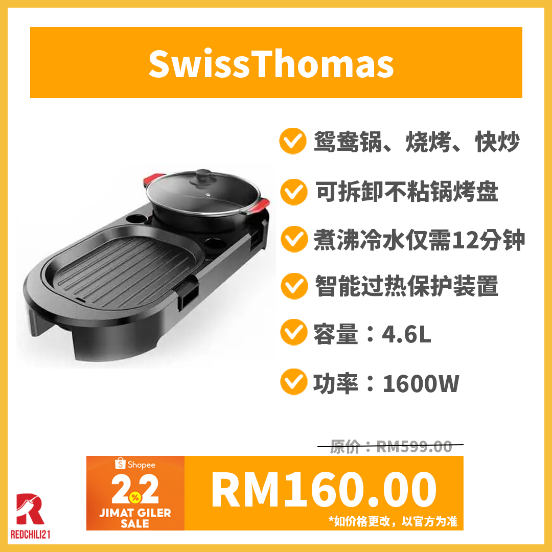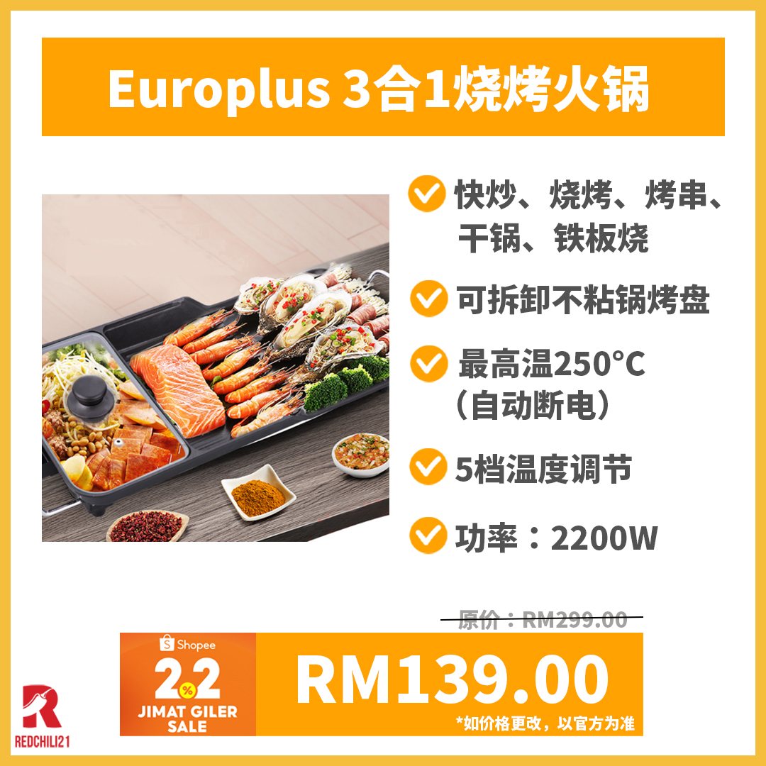 以下为大家推荐5款品牌烧烤火锅,趁着2月2日 Shopee 疯狂节省购物节入手一台吧!