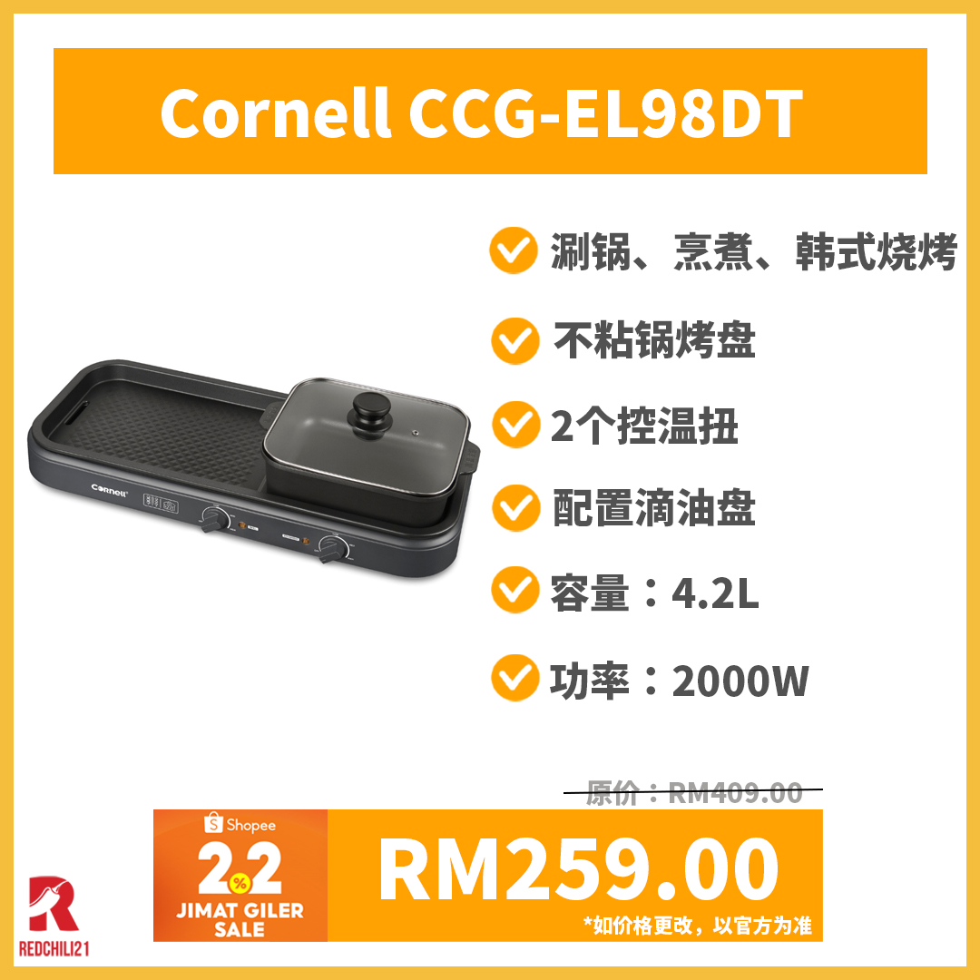 ▪ ⑤ Cornell CCG-EL98DT 2合1 火锅烧烤一体锅