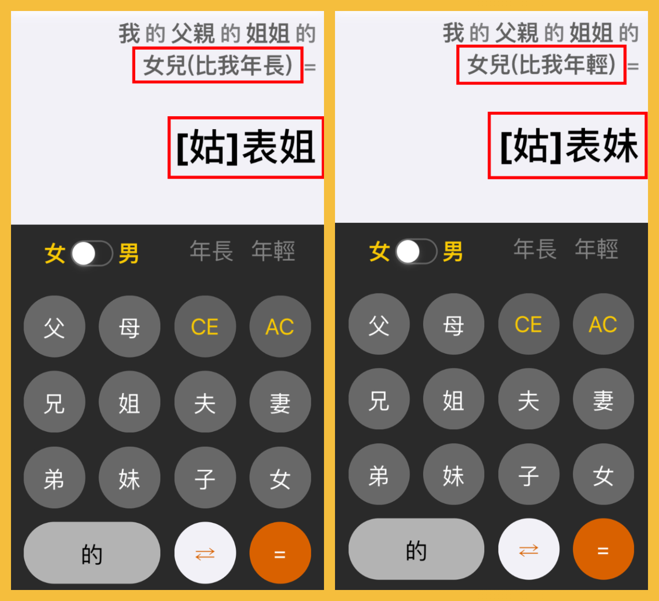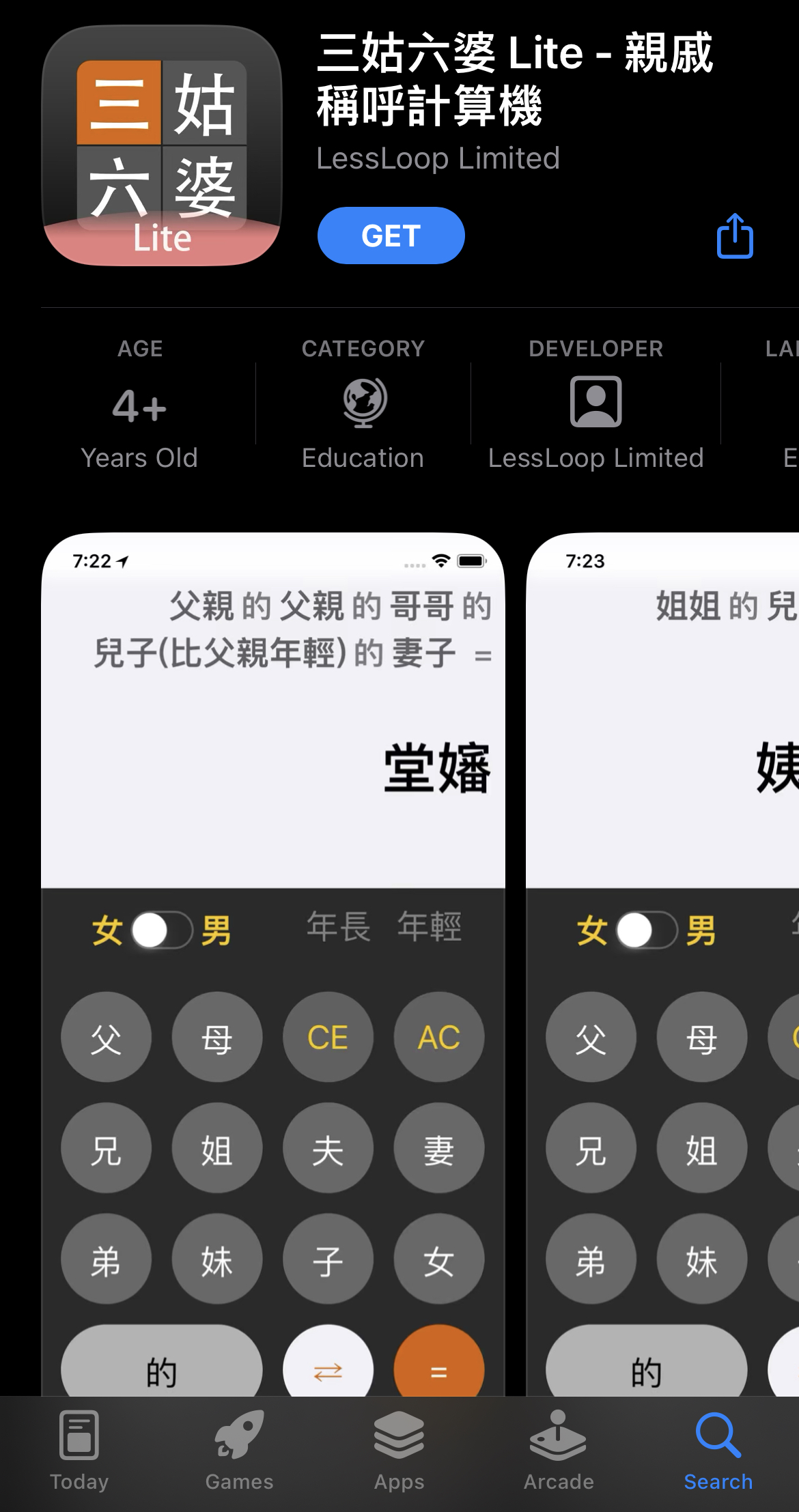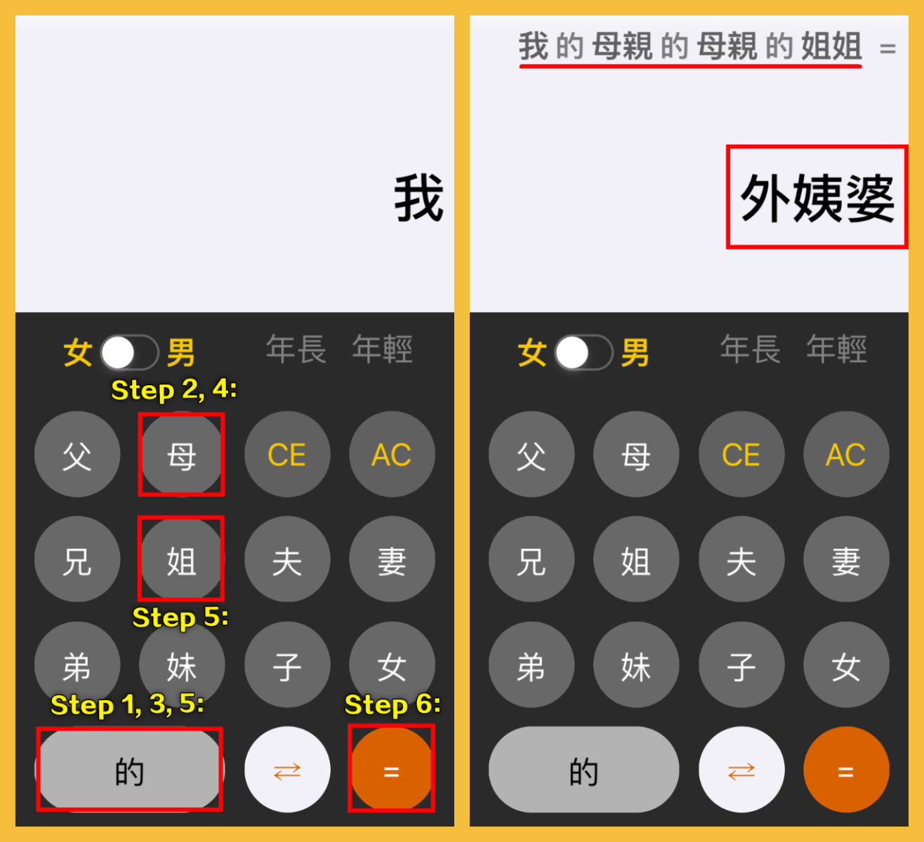使用【三姑六婆 Lite】App 的时候需注意:由于这个 App 是来自香港,因此少部分的称呼是根据香港粤语的哦!