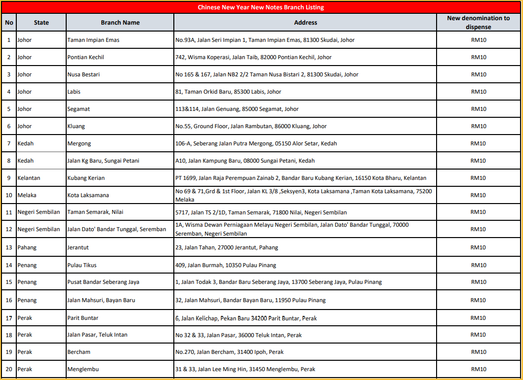 根据联昌银行(CIMB Bank)官网公布,即日起至1月23日推出新钞票!全马共有43处 CIMB 分行的 ATM 可换到新钞票!
