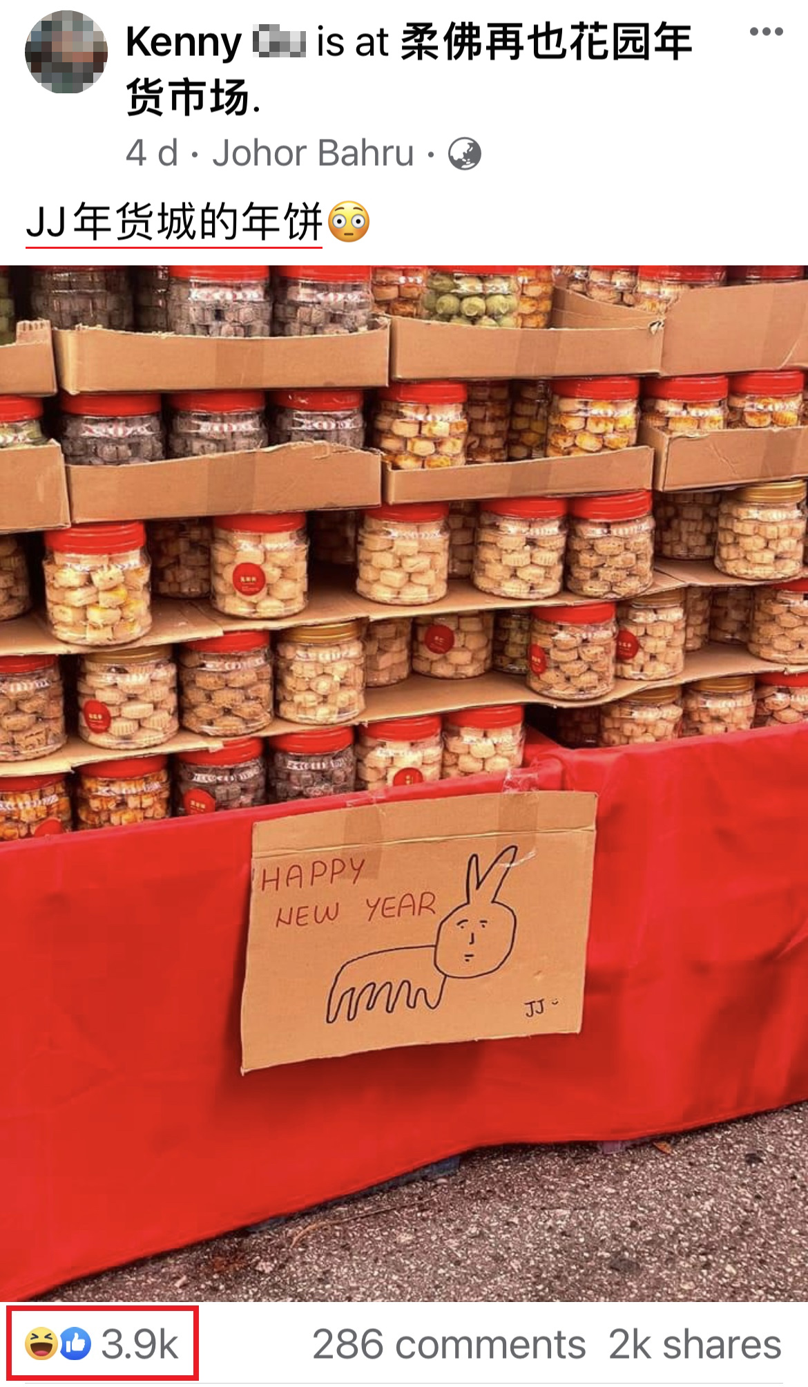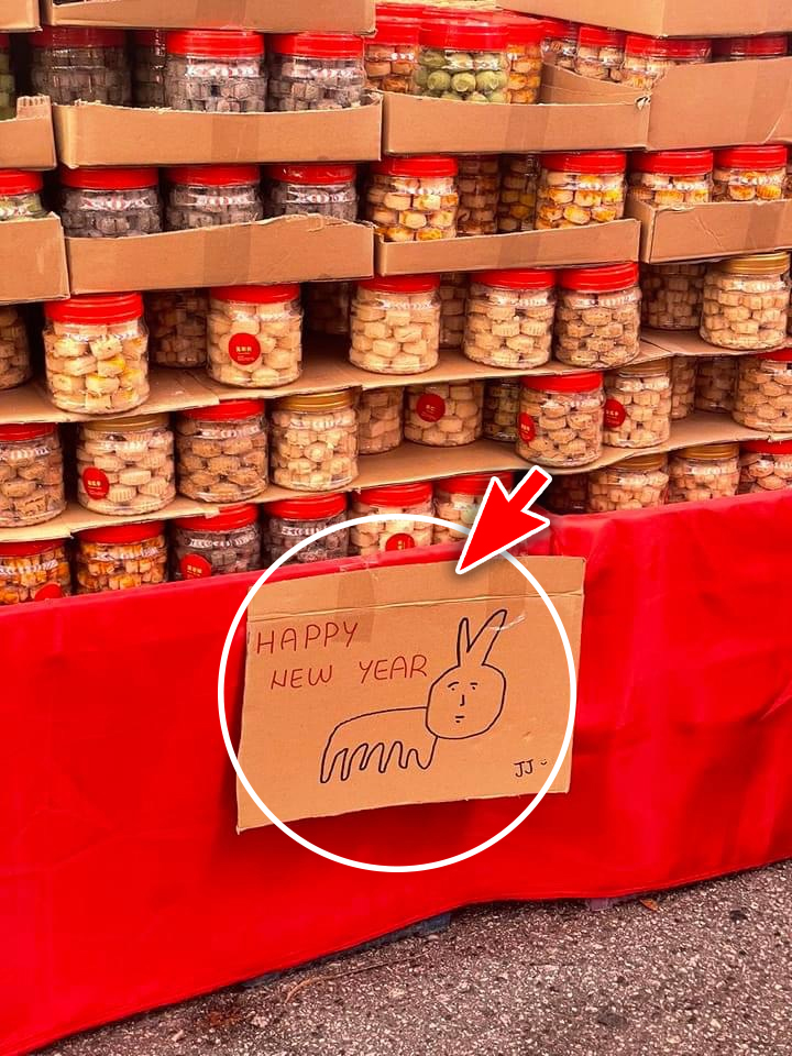 农历新年将即,年货市场可想而知超级热闹,而其中一档卖年饼的摊位因为独特的画风而意外爆红!