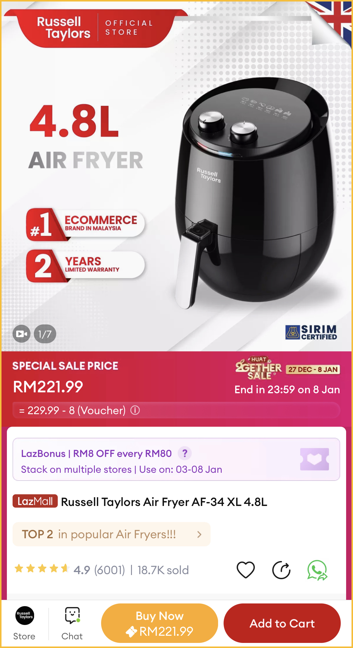 ▼ 例如:Russell Taylors 空气炸锅【点击这里】