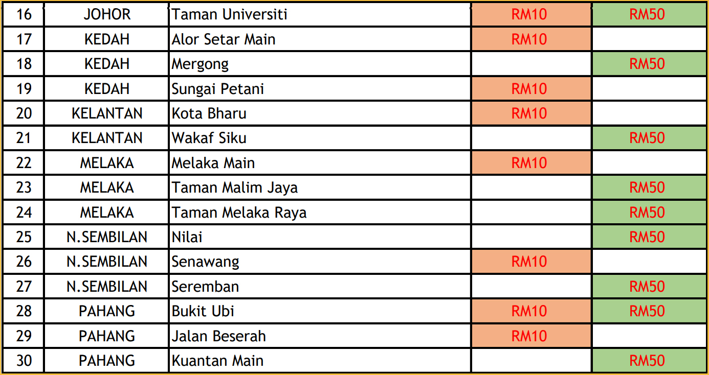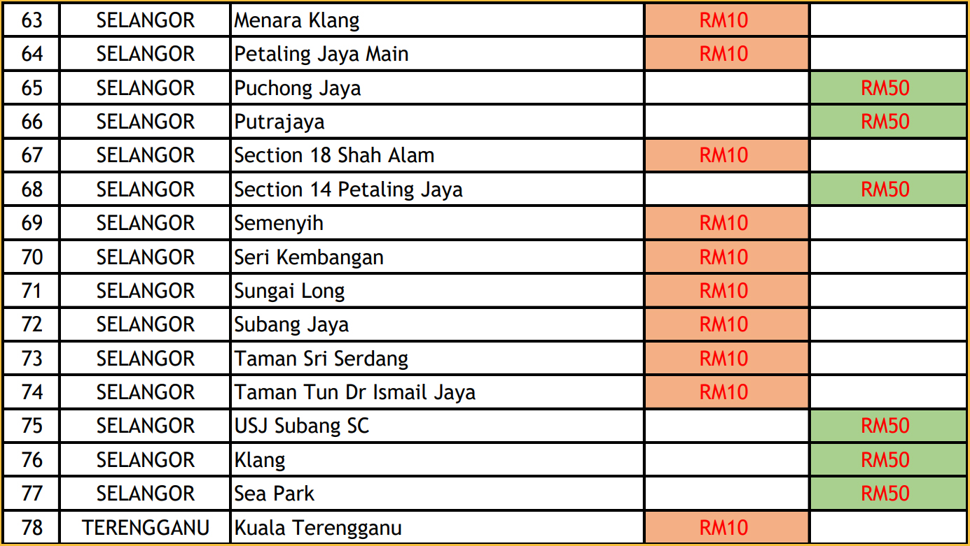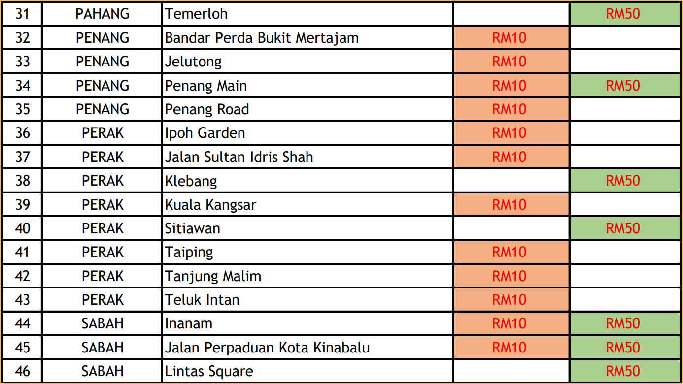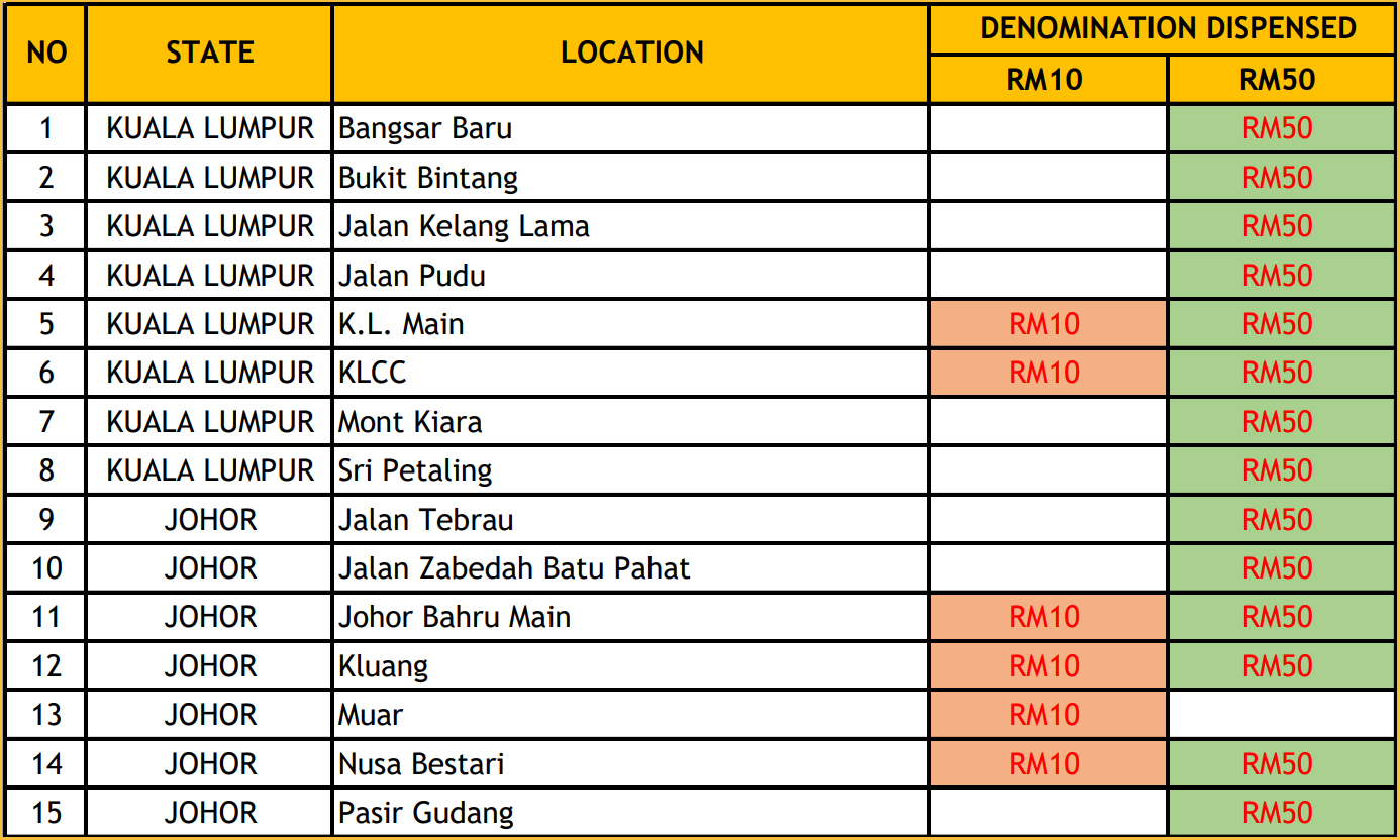 附上有提供新钞票的78处指定 Maybank ATM 分行及地点: