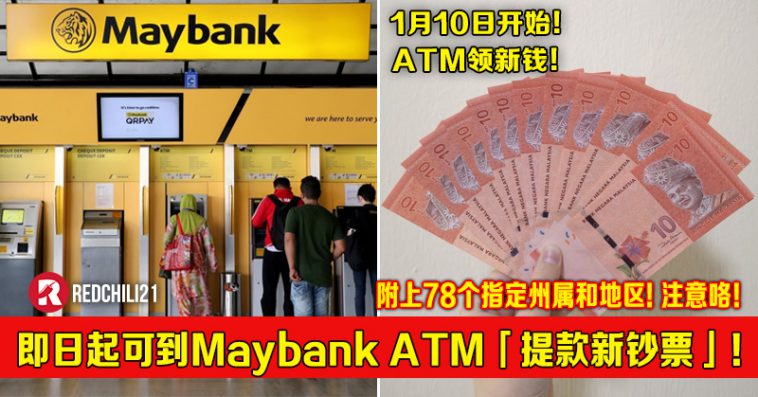 Maybank 将在指定州属和地区的提款机放置新钞票,不过 ATM 目前只提供RM10 和RM50 新钞票哦!