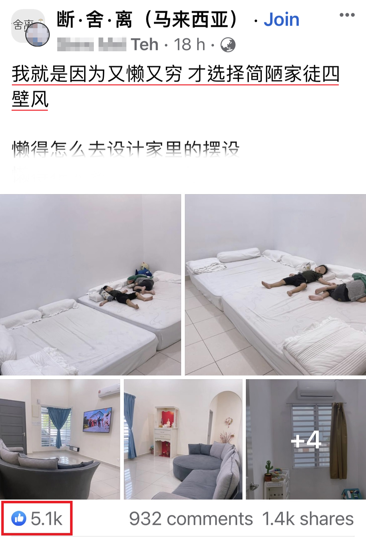 但大马这个小家庭就成功办到了!因为低物欲而造就了今天的“简陋家徒四壁风”小家,全网like爆!太厉害了!