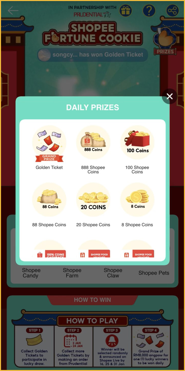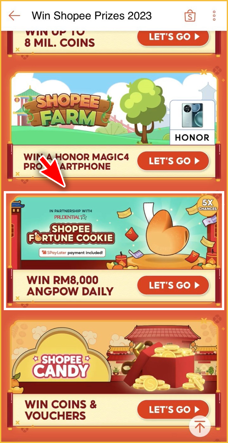 ▼ 步骤 2:选择 “Shopee Fortune Cookie” 就可以开始玩啦~