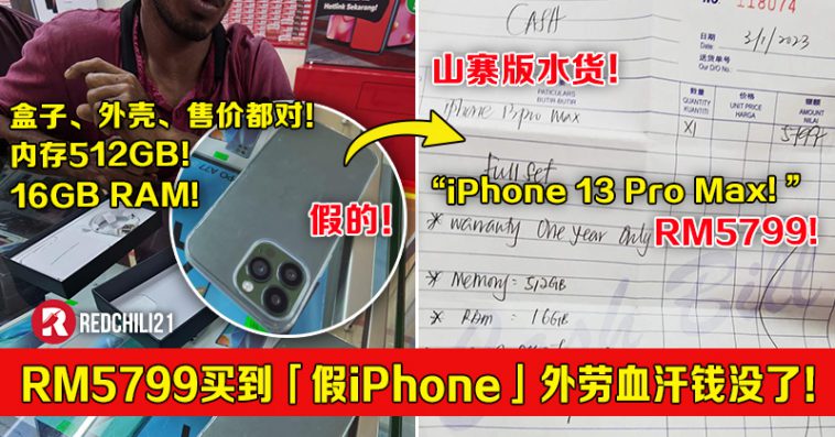 但现在的“假iPhone”已经可以做到“很iPhone”,连价钱也很相像,因此就有人上当受骗!就像这两名外劳男子拿着自己的iPhone 13 Pro Max 去维修才得知自己花了RM5799买的竟然是高仿iPhone!