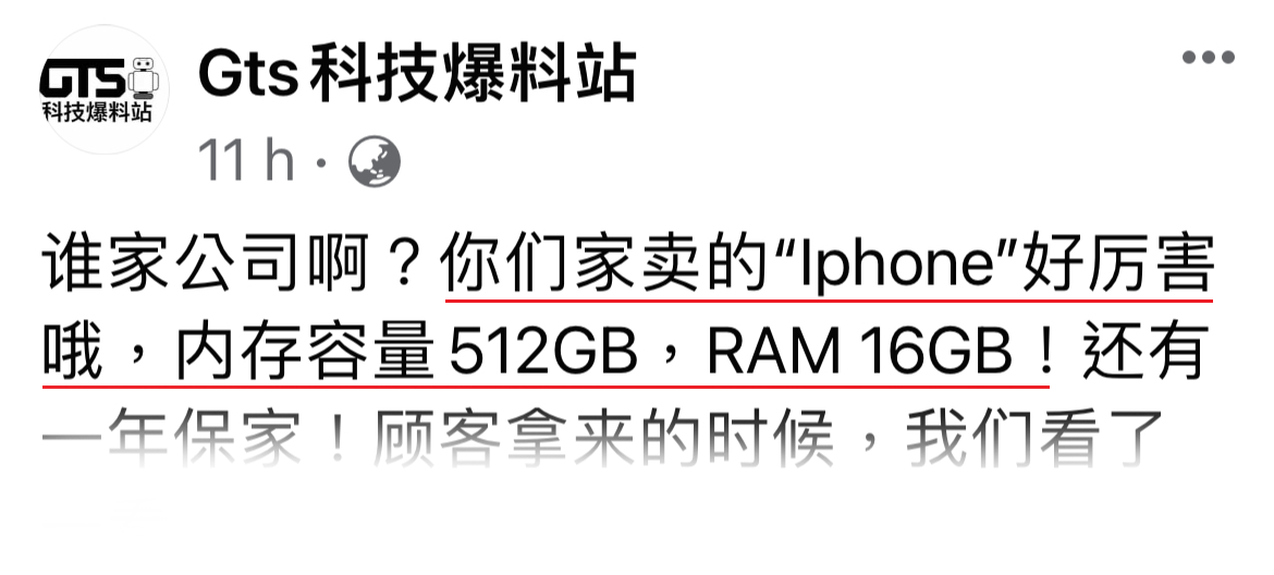 谁家公司啊?你们家卖的“iPhone”好厉害哦,内存容量512GB,RAM 16GB!还有一年保家!