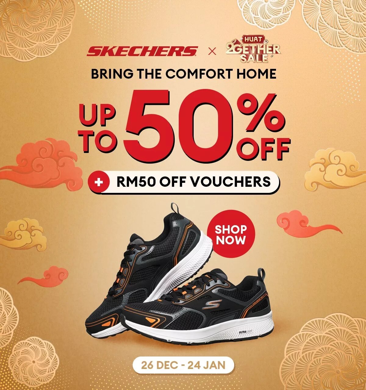 【 Skechers 】折扣高达50%+额外RM50优惠券!
