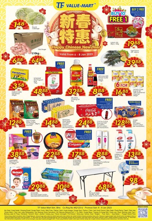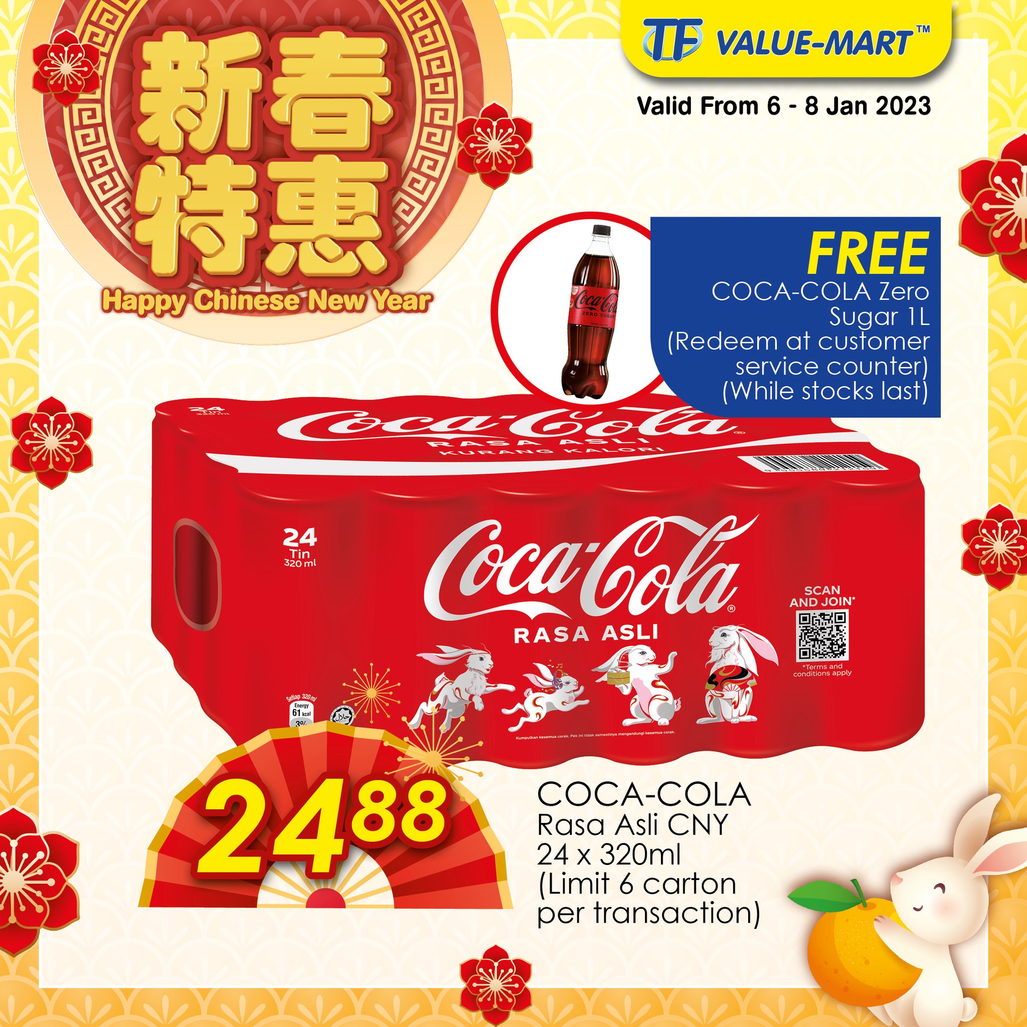 即日起至1月8日,全马多处都有分行的 TF Value-Mart 举办3天新春促销优惠,其中 Coke 和 Tiger 超低价,如果错过了没买,你一定会后悔!