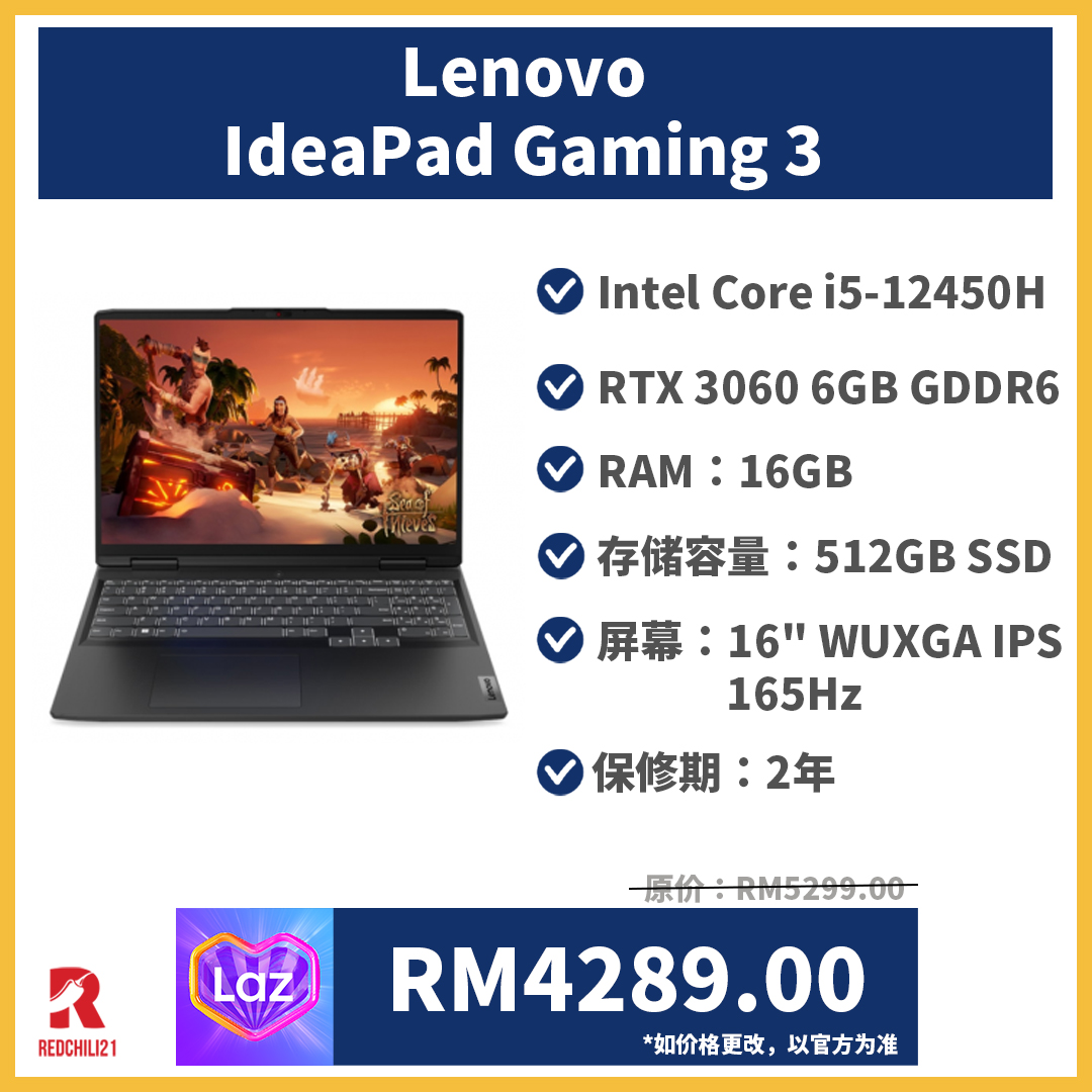 ▪ ② Lenovo IdeaPad Gaming 3 16IAH7 游戏笔记本电脑