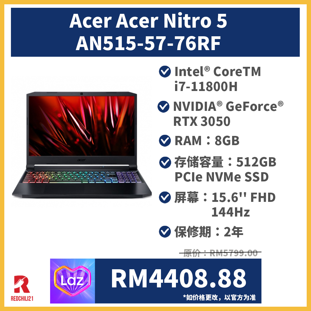 ▪ ④ Acer Nitro 5 AN515-57-76RF 游戏笔记本电脑