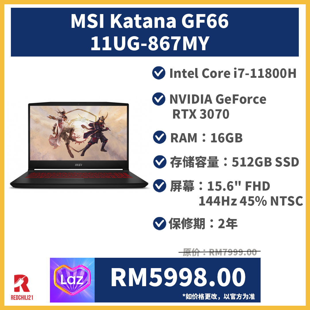 ▪ ⑥ MSI Katana GF66 11UG-867MY 游戏笔记本电脑
